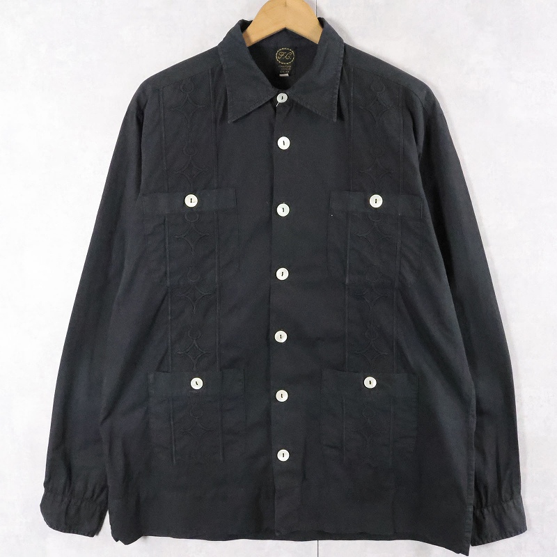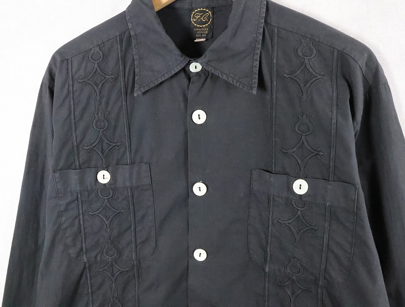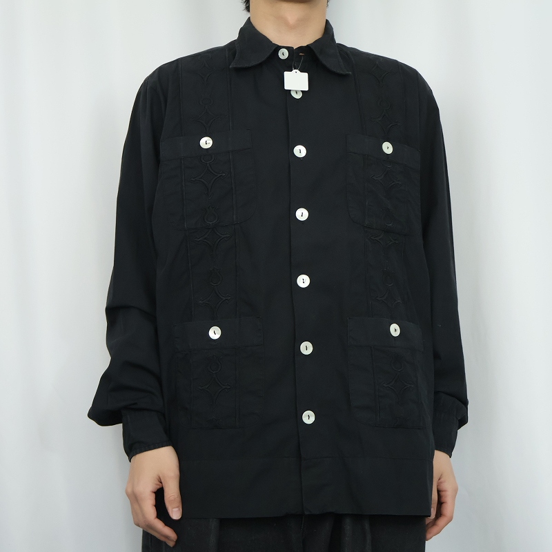 90's〜 Forniture Civili 刺繡デザイン キューバシャツ BLACK XXL [165644]