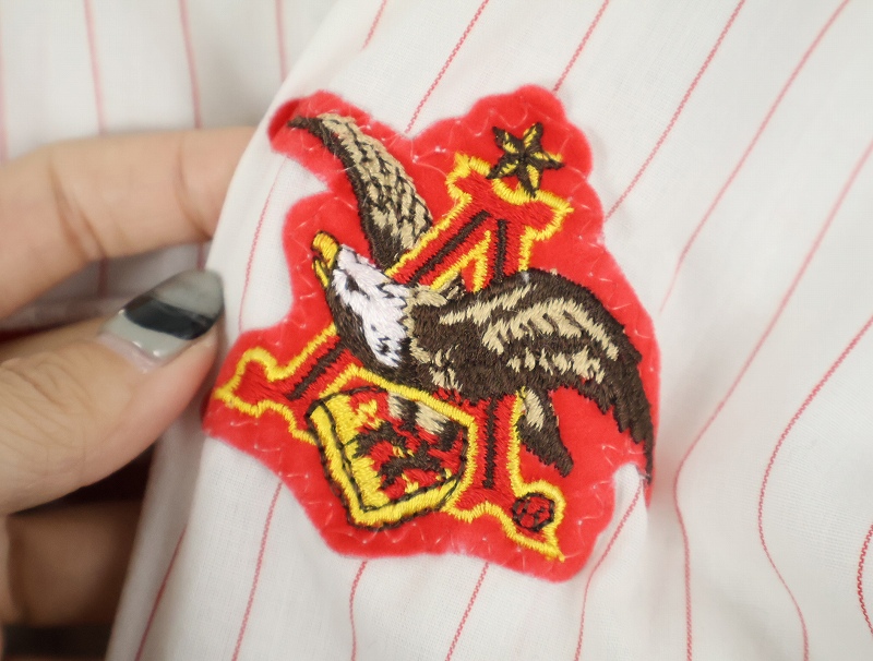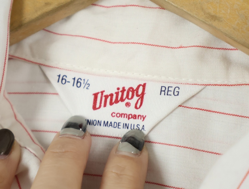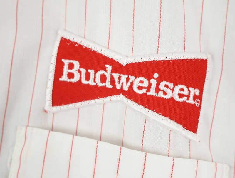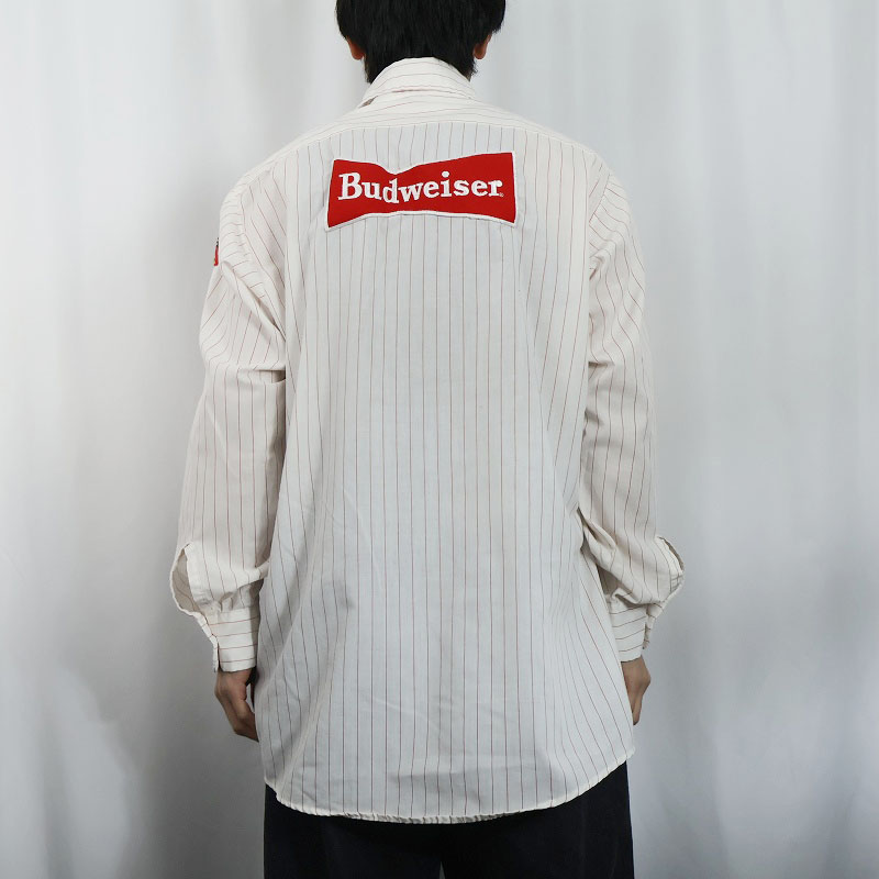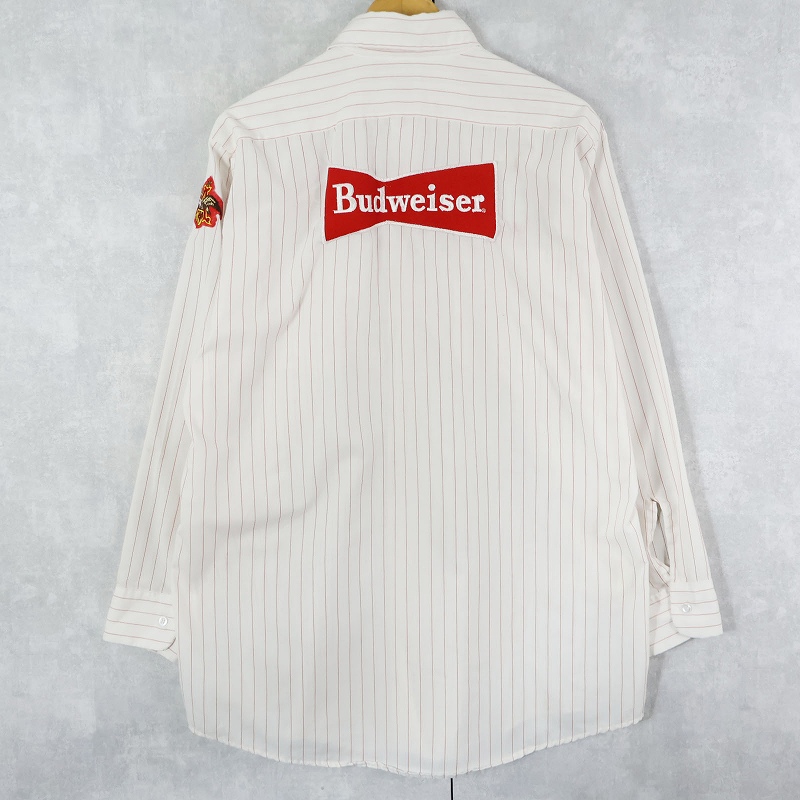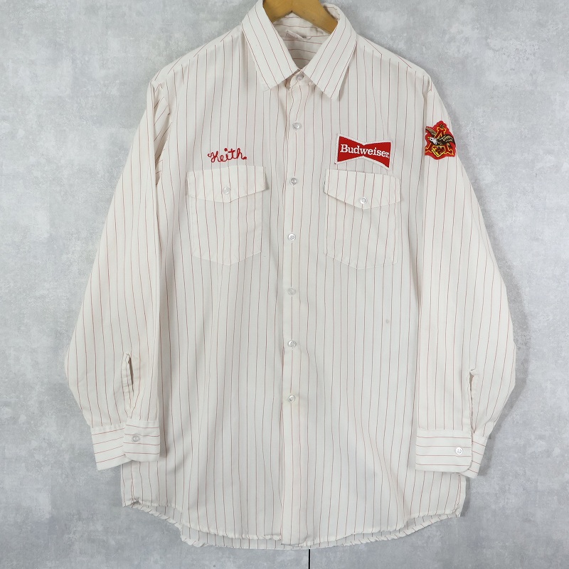 70's Unitog USA製 "Budweiser" ストライプ柄 ロゴワッペン ワークシャツ SIZE16-16 1/2 [165662]