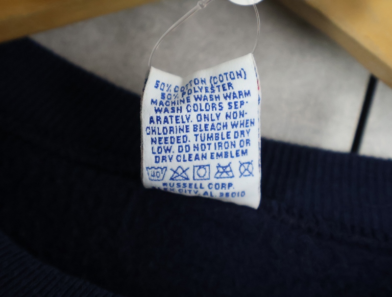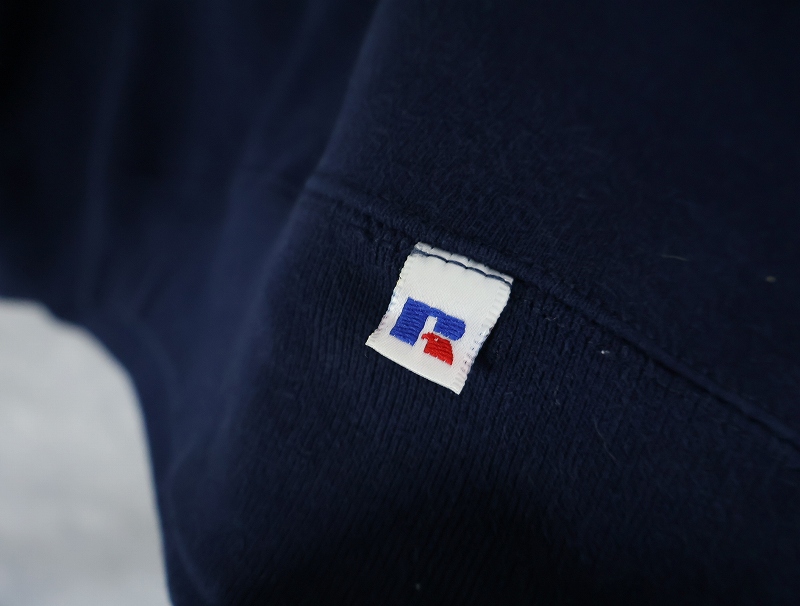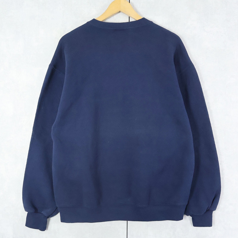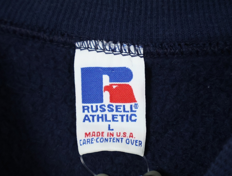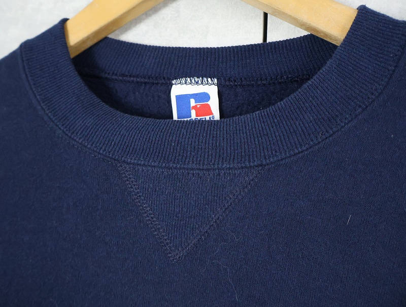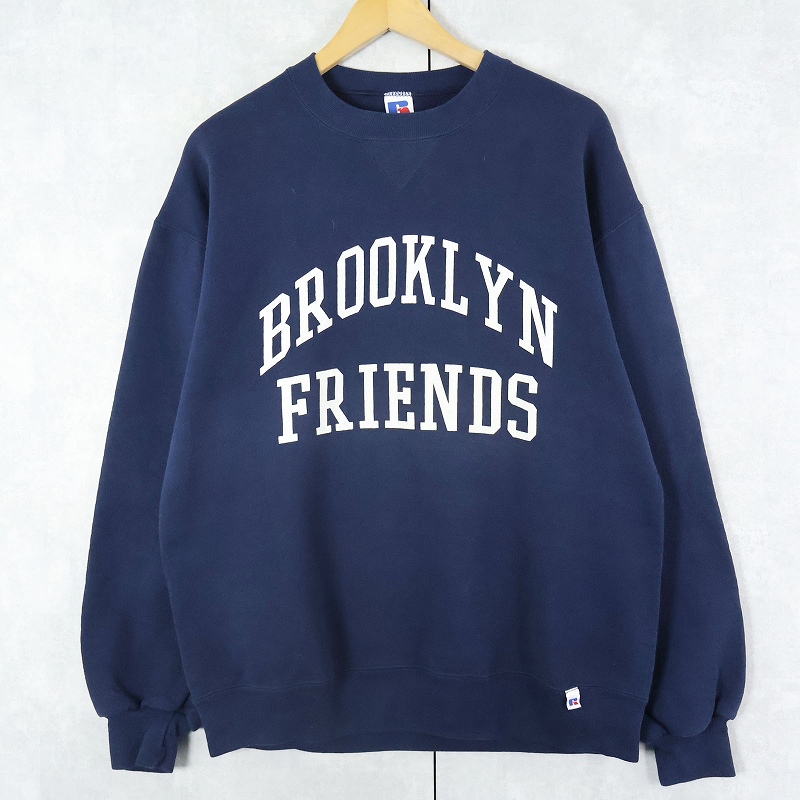 90's RUSSELL ATHLETIC USA製 "BROOKLYN FRIENDS" 前V プリントスウェット NAVY L [165678]