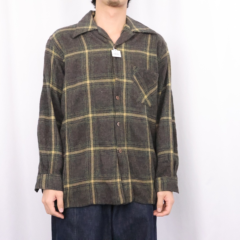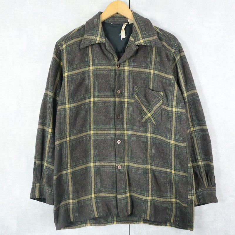 70's REI チェック柄 ウールオープンカラーシャツ [165680]