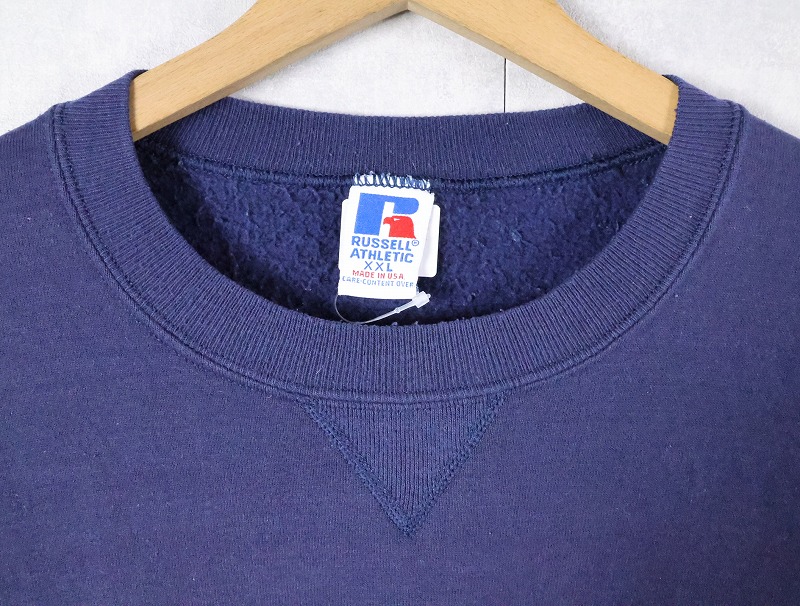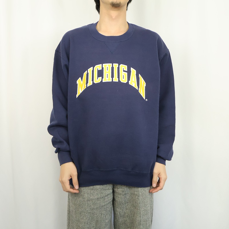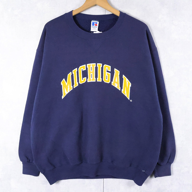 90's RUSSELL ATHLETIC USA製 "MICHIGAN" 前V プリントスウェット XXL [165708]