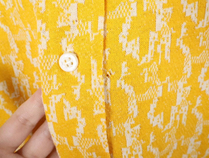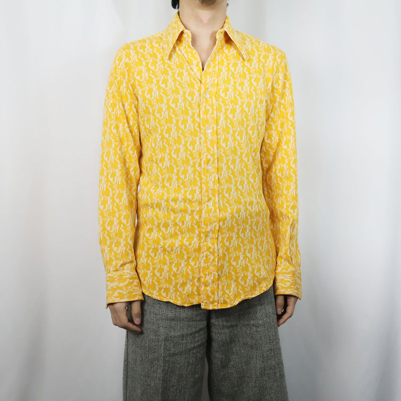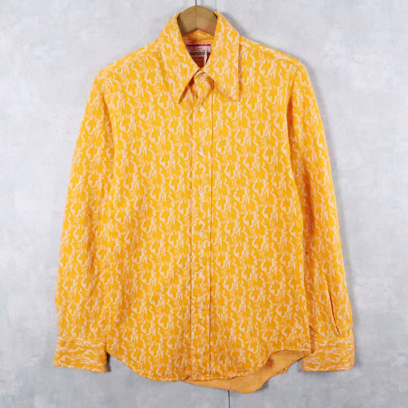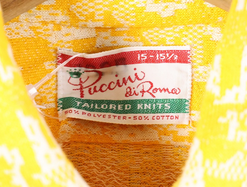 70's Puccini di Roma 総柄織り コットン×ポリエステルニットシャツ SIZE15-15 1/2 [165811]