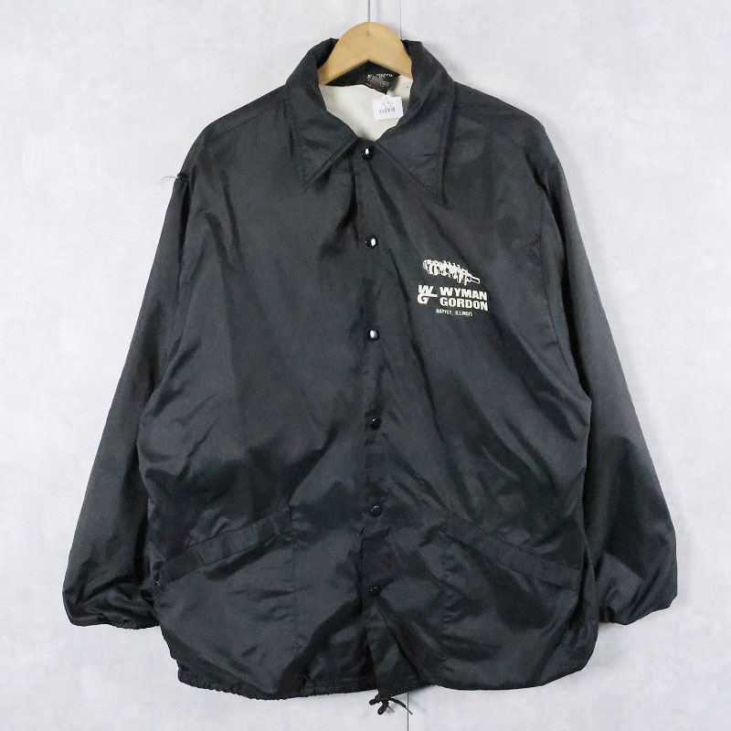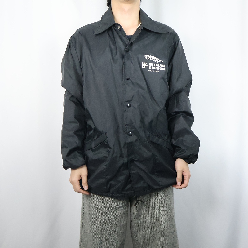 70's Hilton USA製 "WYMAN GORDON" プリントナイロンコーチジャケット BLACK L [165834]