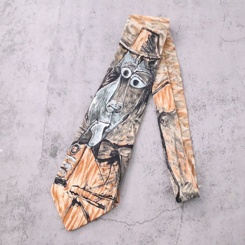 90's Picasso "Smoker" アート柄 シルクネクタイ [165855]