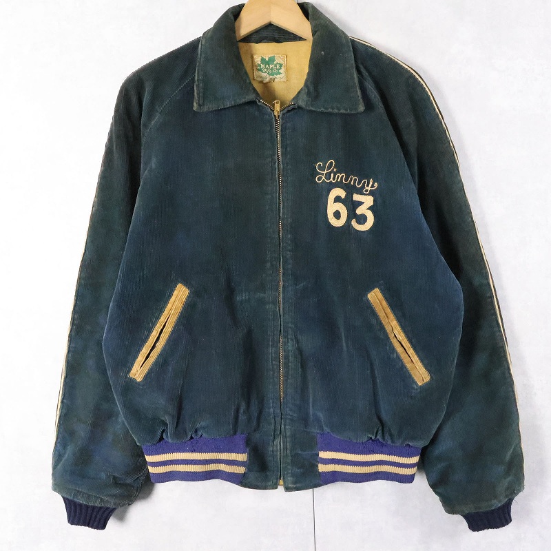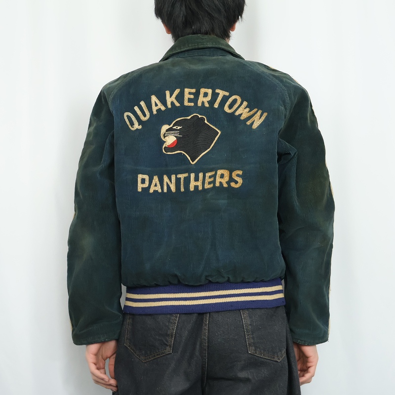 60's MAPLE Mfg.Co. "QUAKERTOWN PANTHERS" チェーン刺繍 コーデュロイスタジャン SIZE40 [165876]