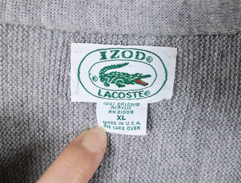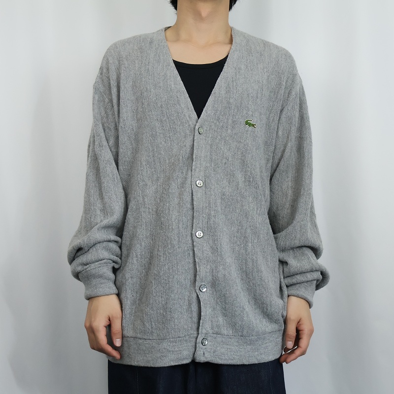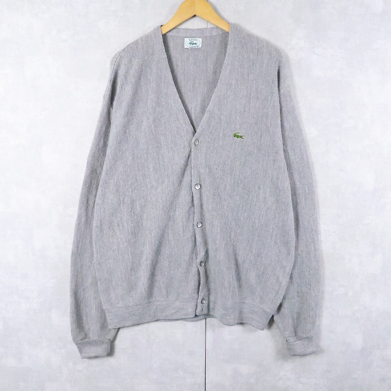 80〜90's IZOD LACOSTE USA製 ロゴ刺繍 アクリルニットカーディガン XL [165888]