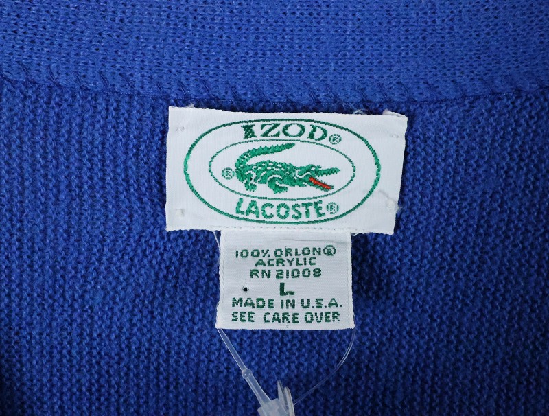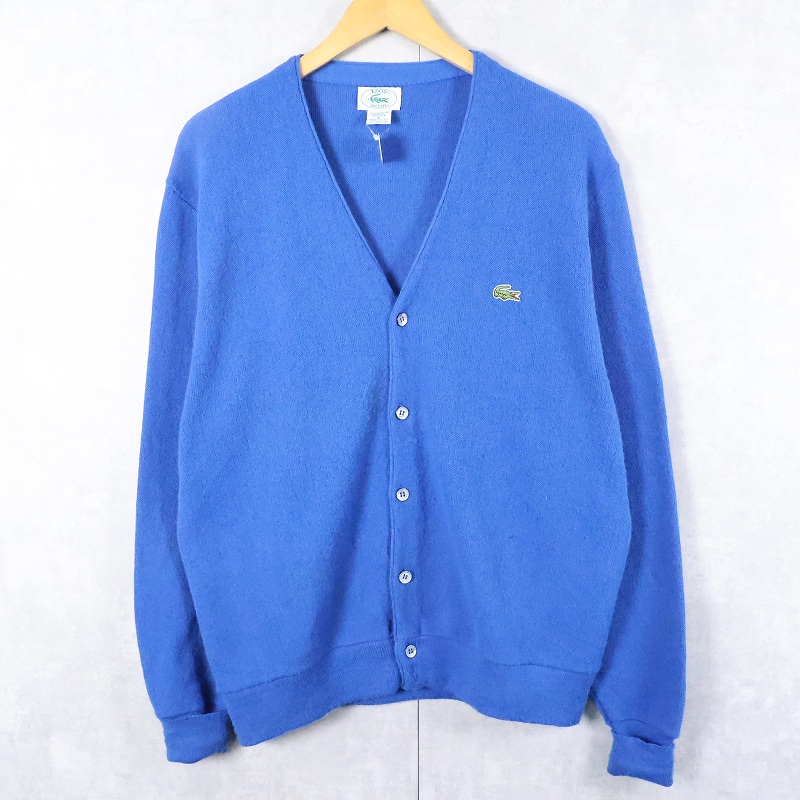 80〜90's IZOD LACOSTE USA製 ロゴ刺繍 アクリルニットカーディガン L [165890]
