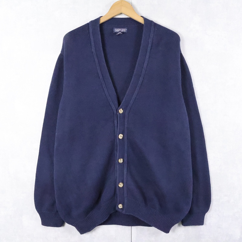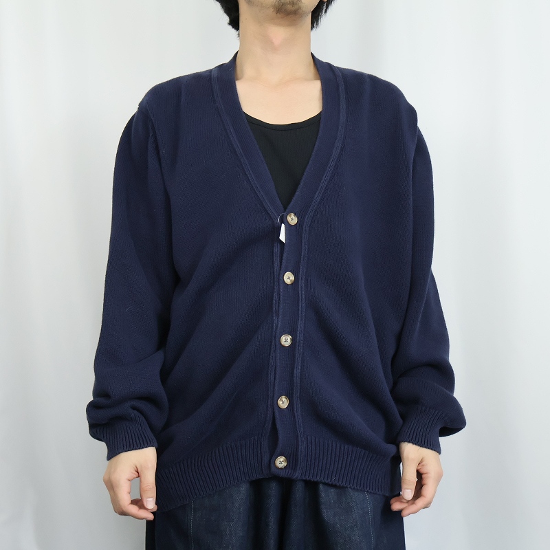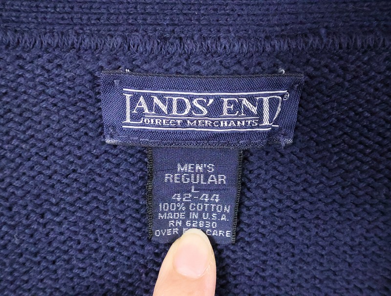90's LANDS' END USA製 コットンニットカーディガン NAVY L [165910]