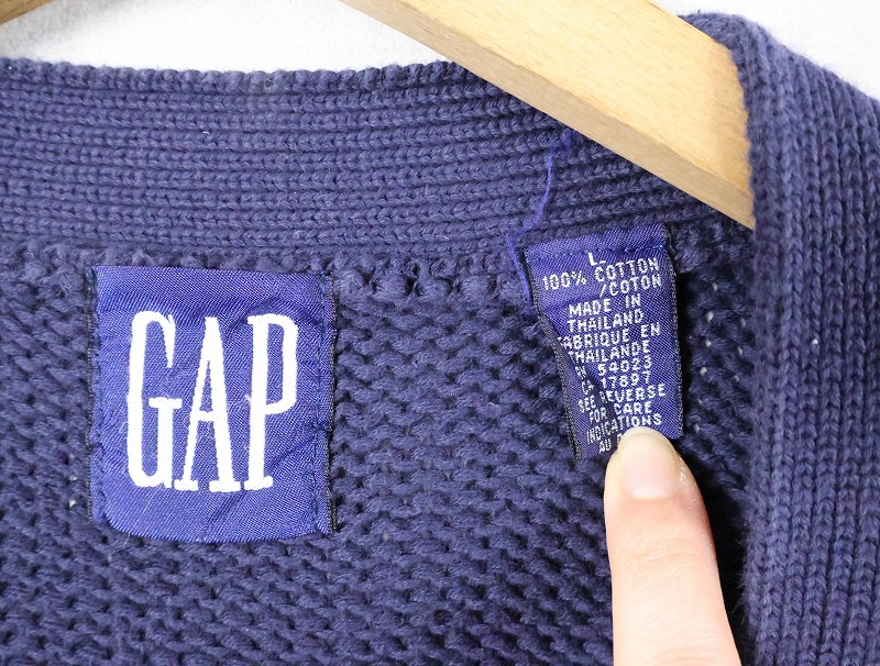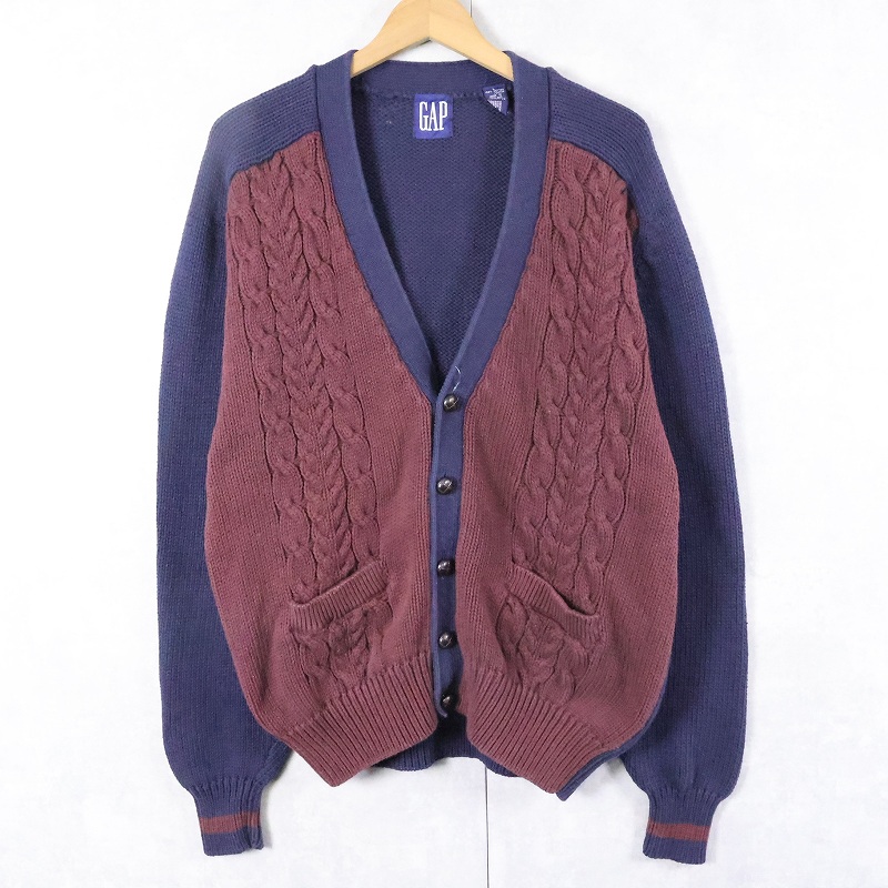 90's GAP 切り替えデザイン コットンケーブルニットカーディガン L [165918]