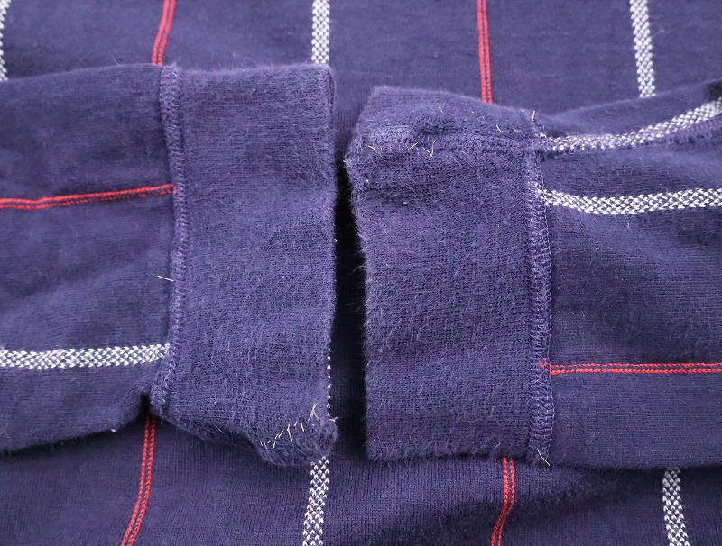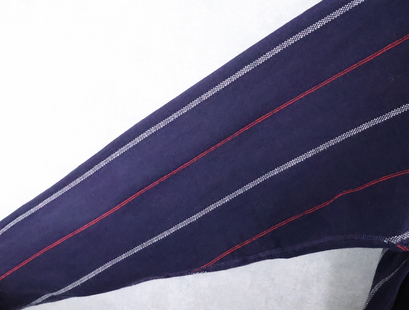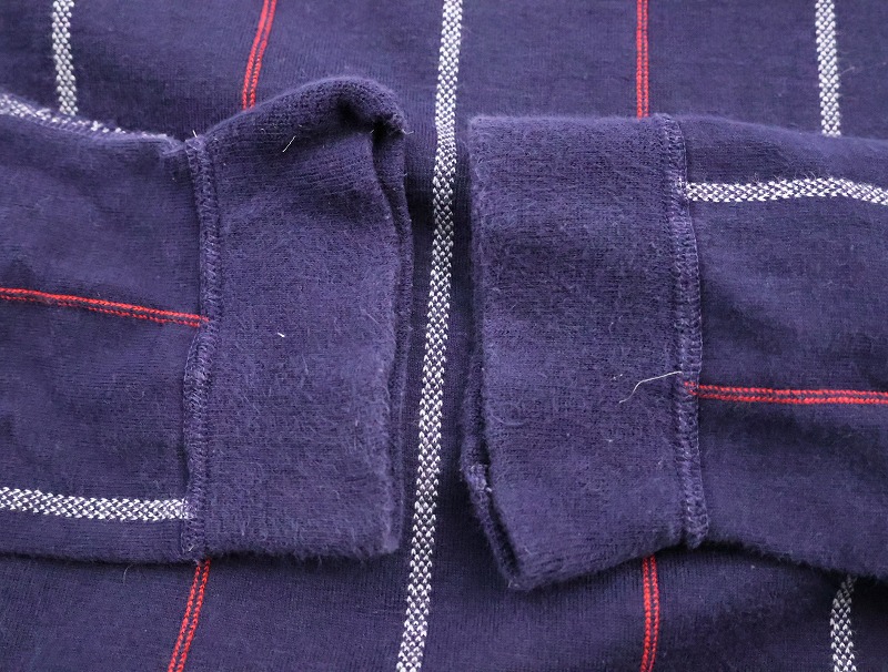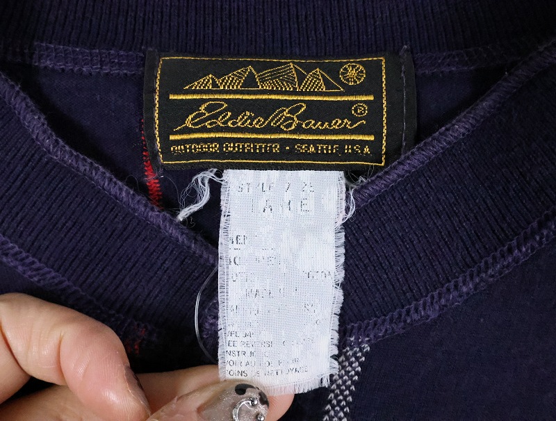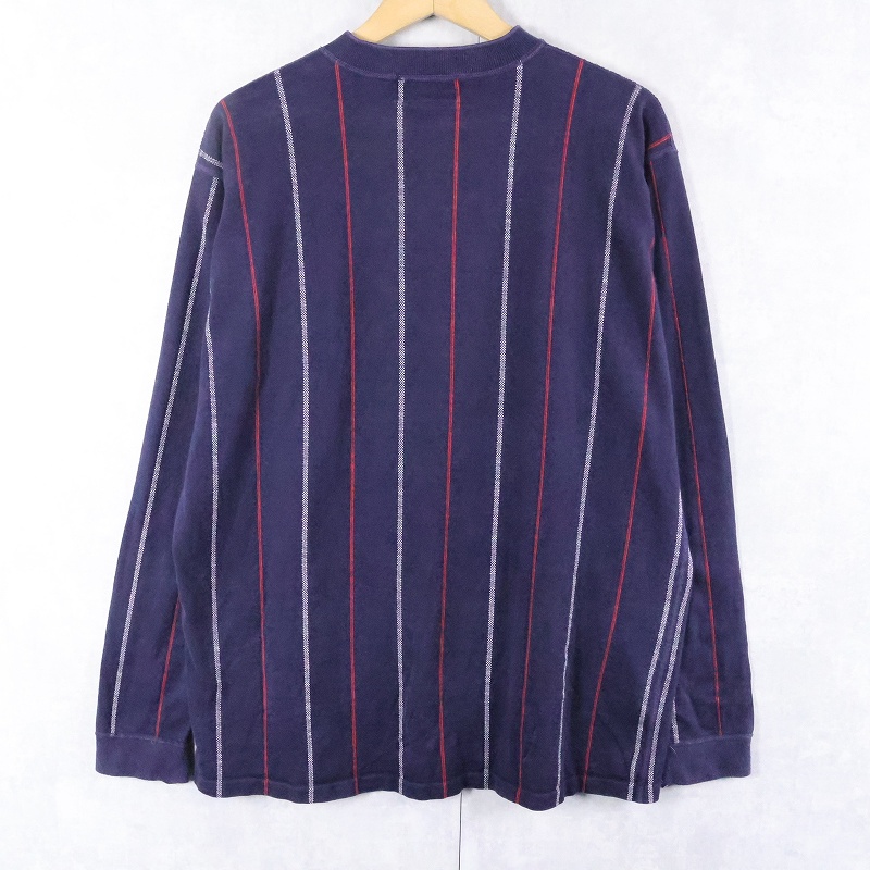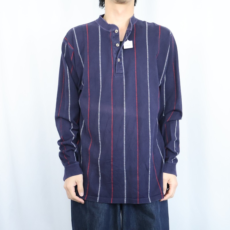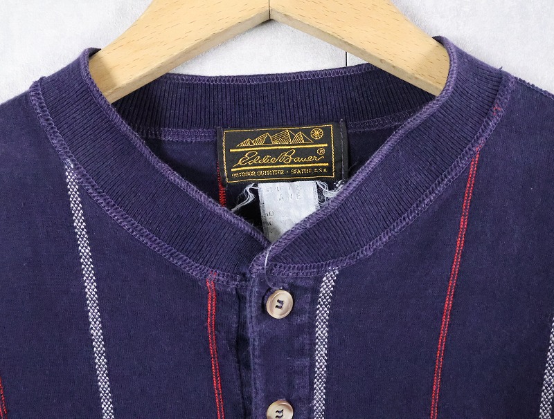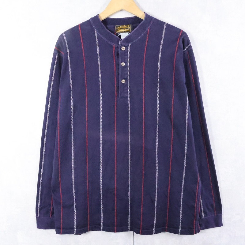 80's Eddie Bauer ストライプ柄 ヘンリーネックロンT NAVY [165957]