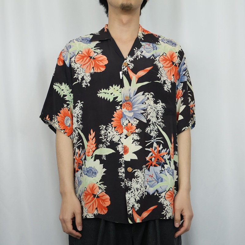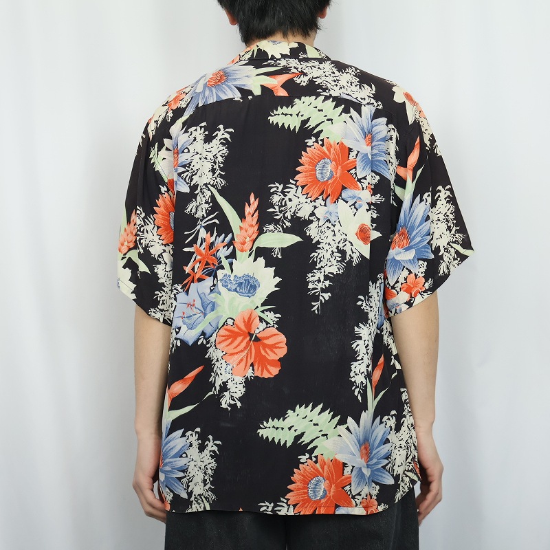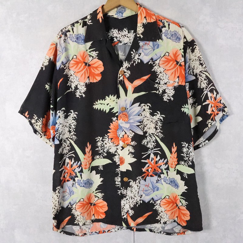 50's Kilohana 花柄 オールオーバーパターン レーヨンハワイアンシャツ BLACK L [165963]
