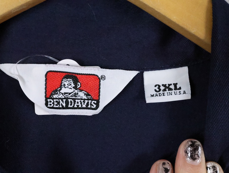 90's BEN DAVIS USA製 ハーフジップ ワークシャツ NAVY 3XL [165976]