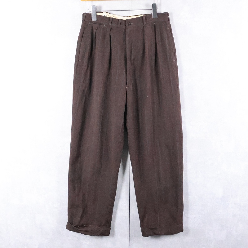 50〜60's ストライプ柄 2タック ウールスラックス W29 [165984]