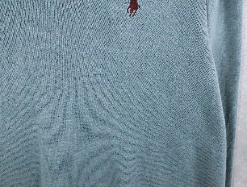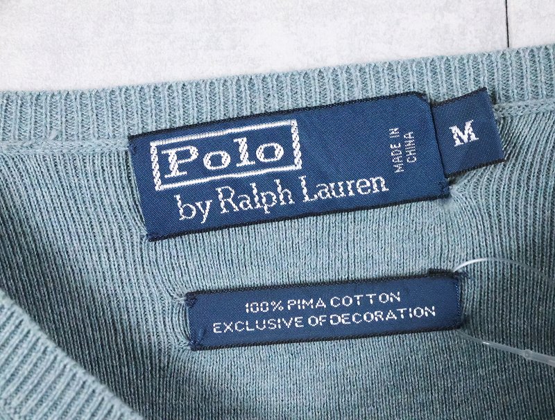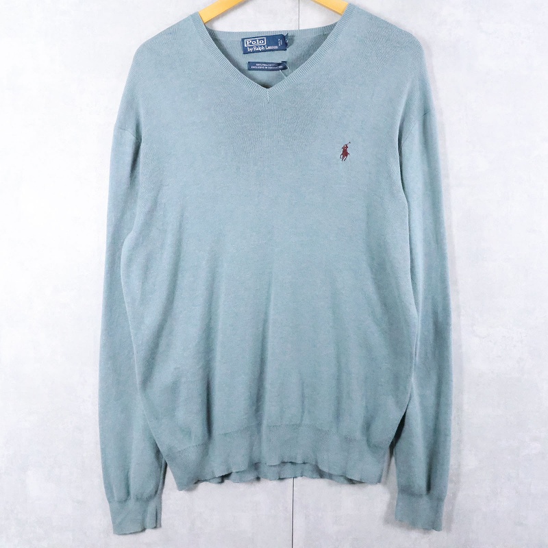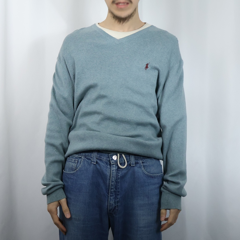 POLO Ralph Lauren ロゴ刺繍 ピマコットン Vネックニットセーター M [165992]