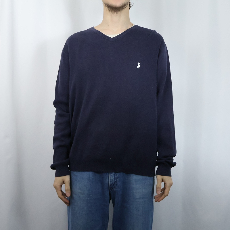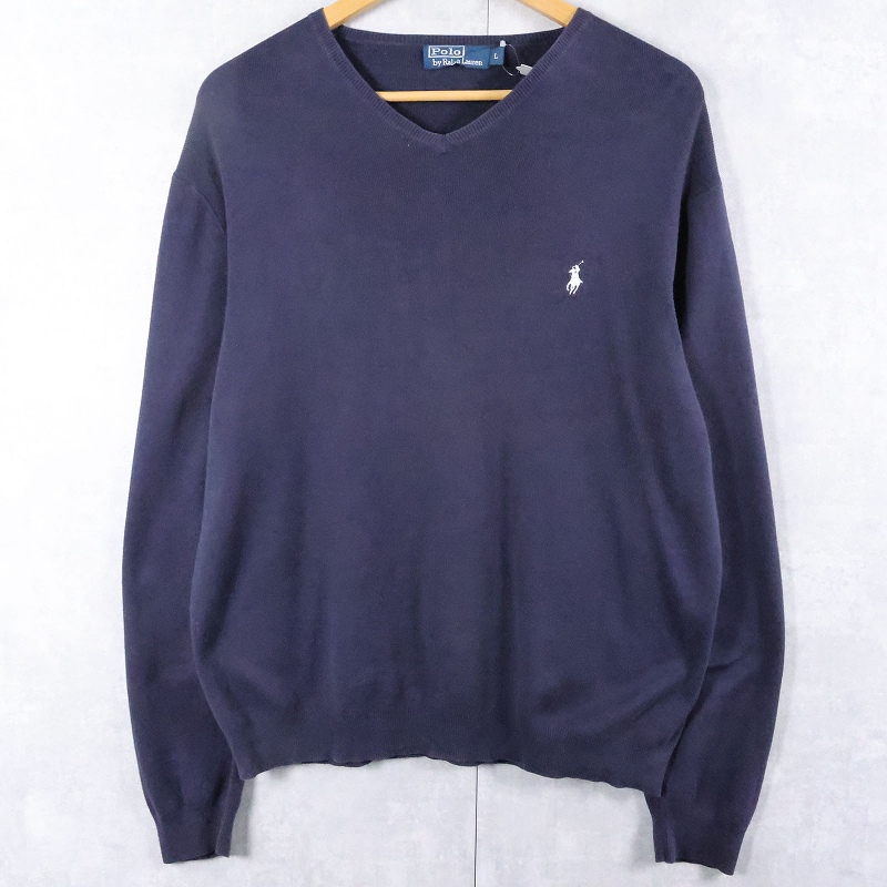 POLO Ralph Lauren ロゴ刺繍 ピマコットン Vネックニットセーター NAVY L [165993]