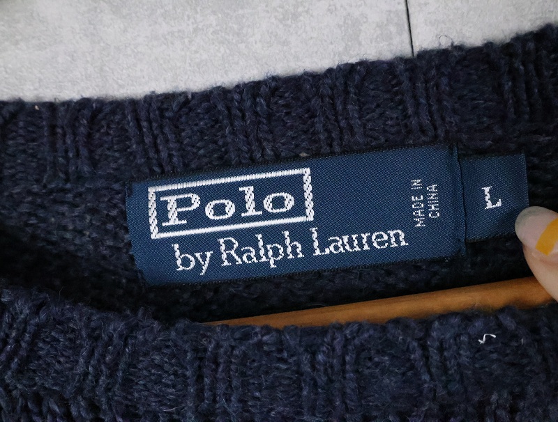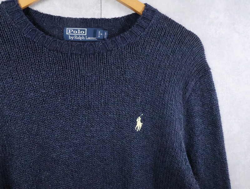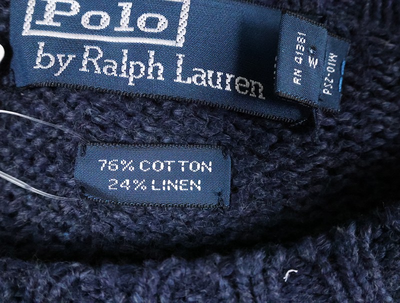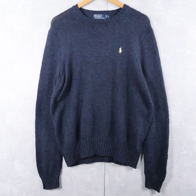 POLO Ralph Lauren ロゴ刺繍 コットン×リネンニットセーター NAVY L [165994]