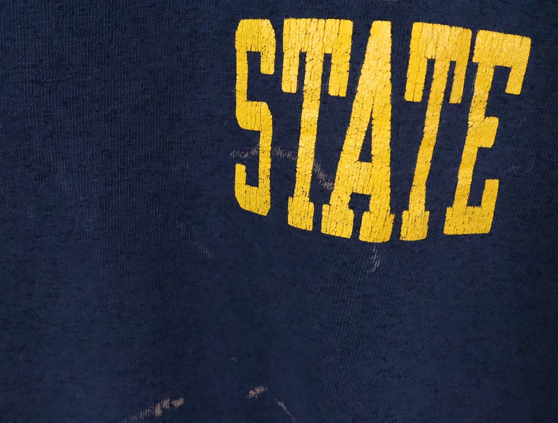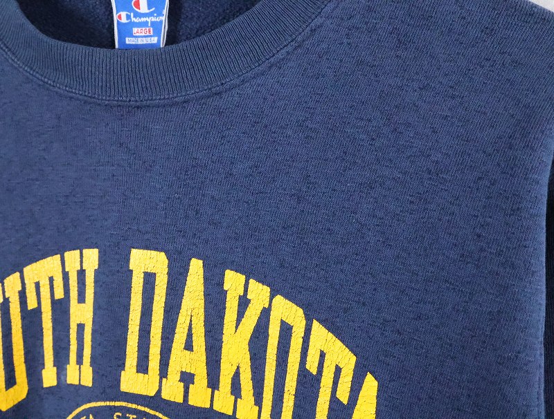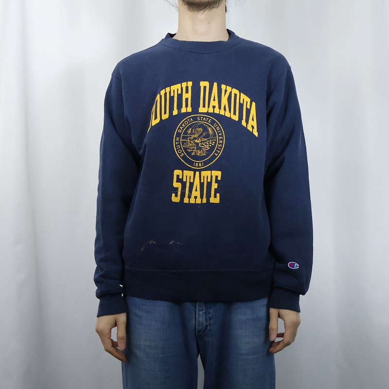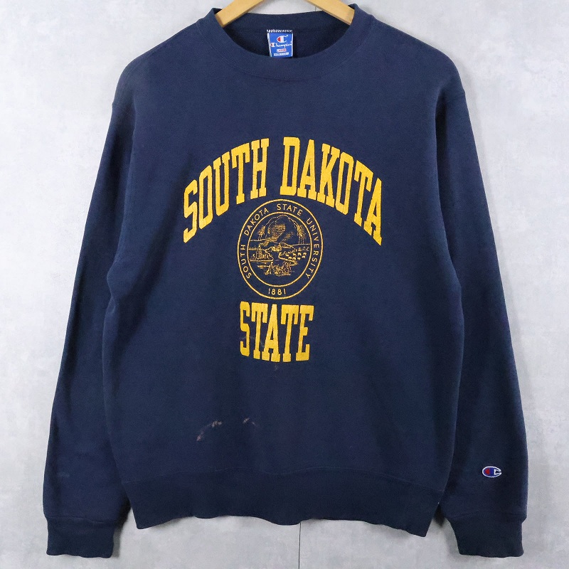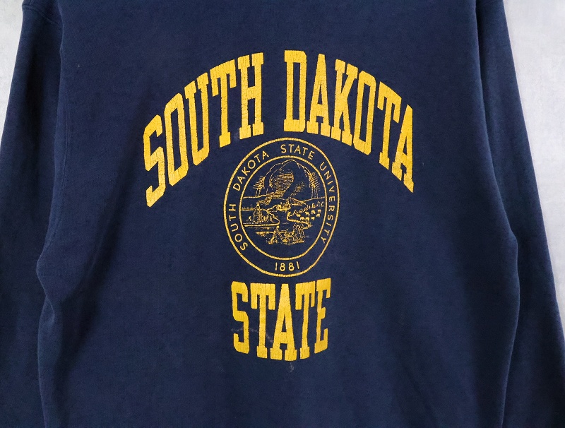 80〜90's Champion 青刺繍タグ 中期 USA製 "SOUTH DAKOTA STATE" プリントスウェット NAVY L [165997]