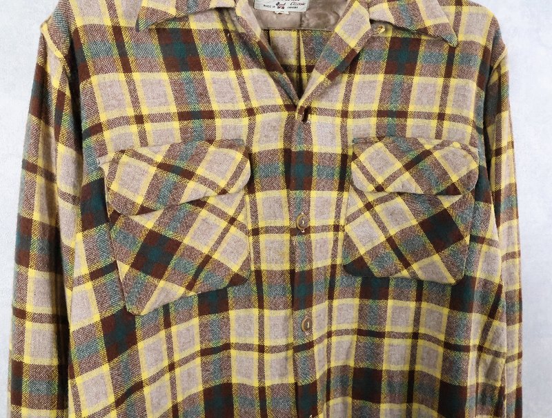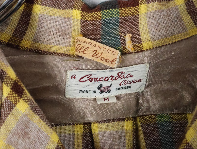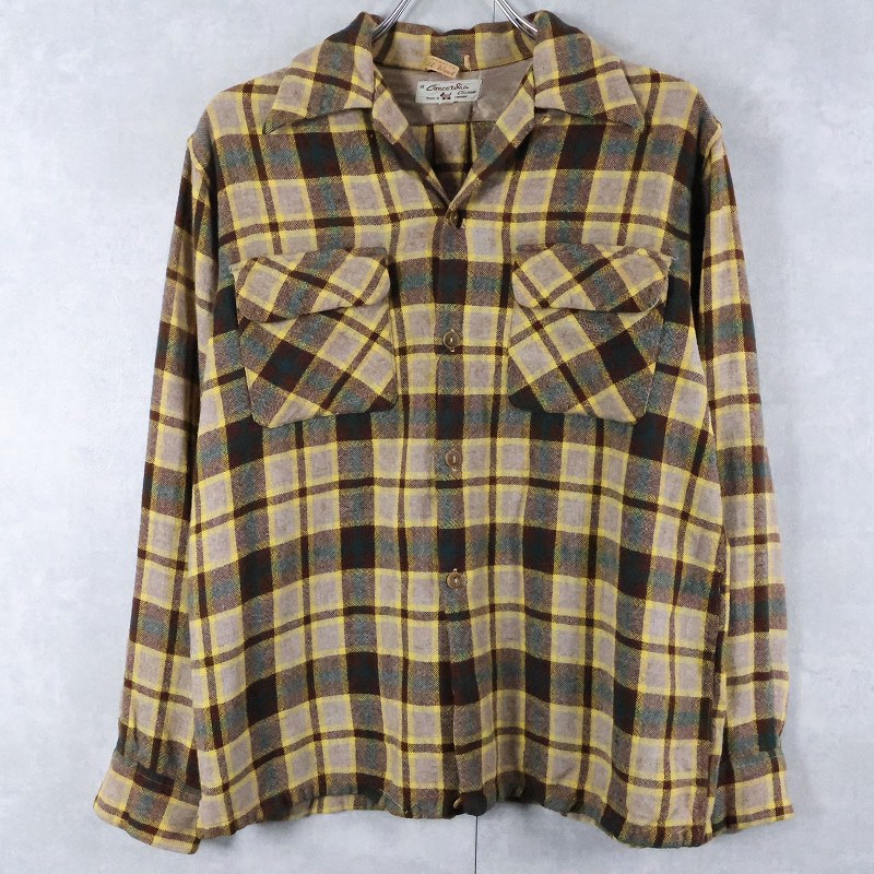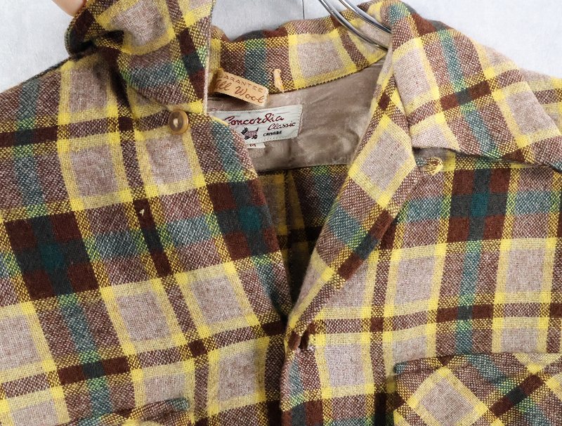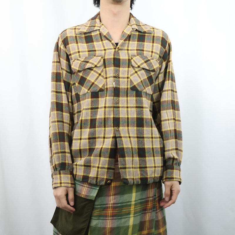 50's Concordia Classic チェック柄 ウール オープンカラーシャツ M [165998]