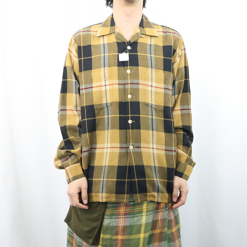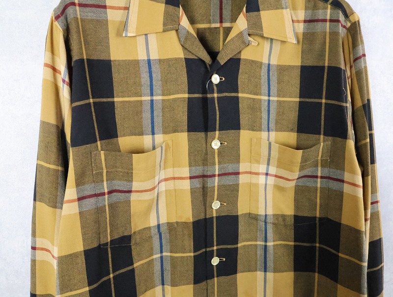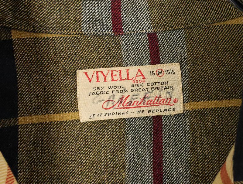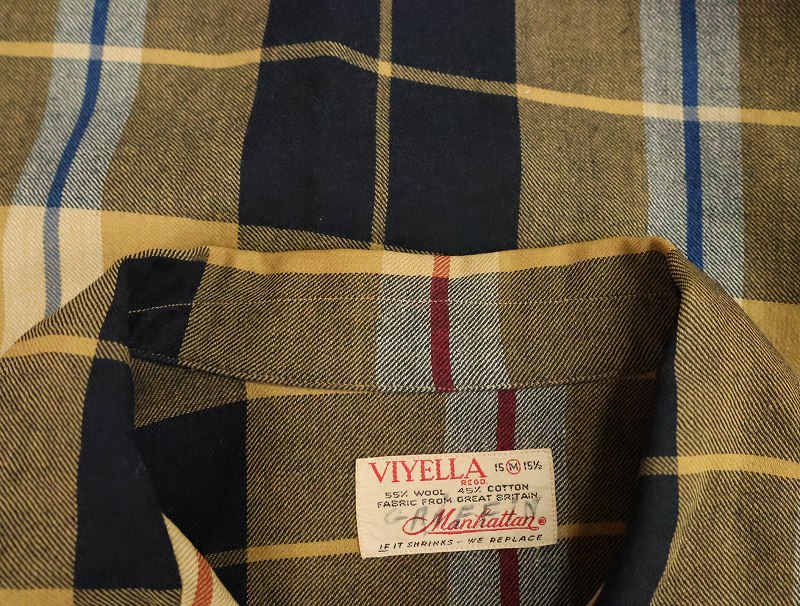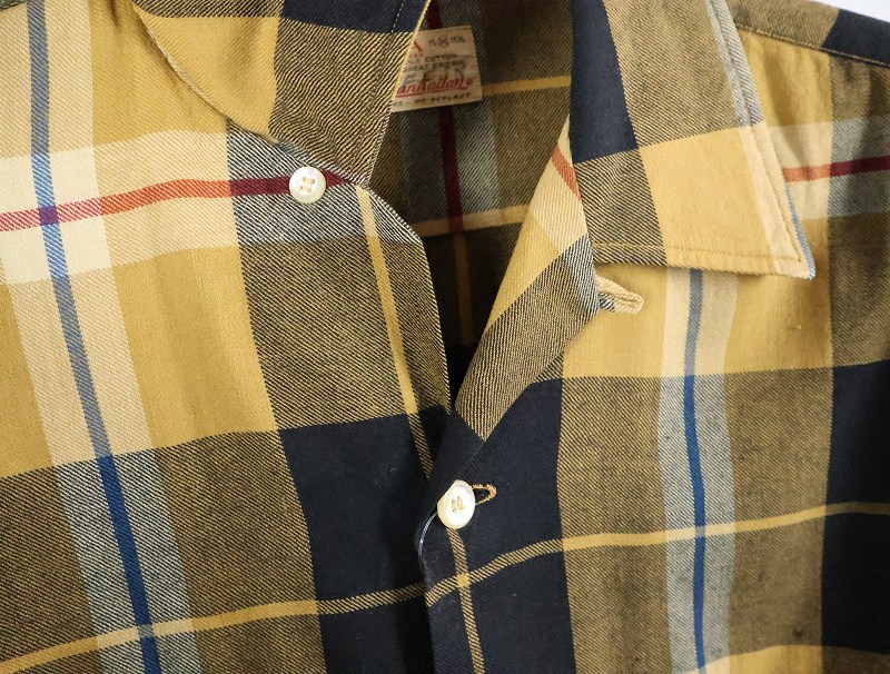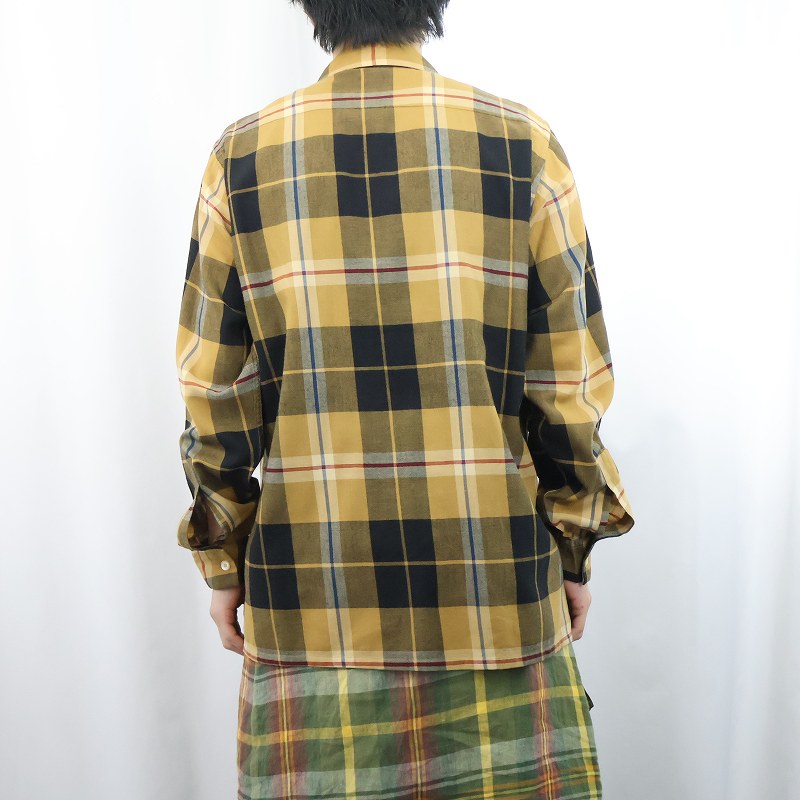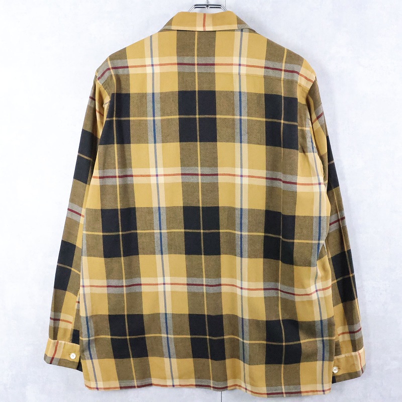 60's Manhattan チェック柄 ウール×コットン オープンカラーシャツ M [166000]