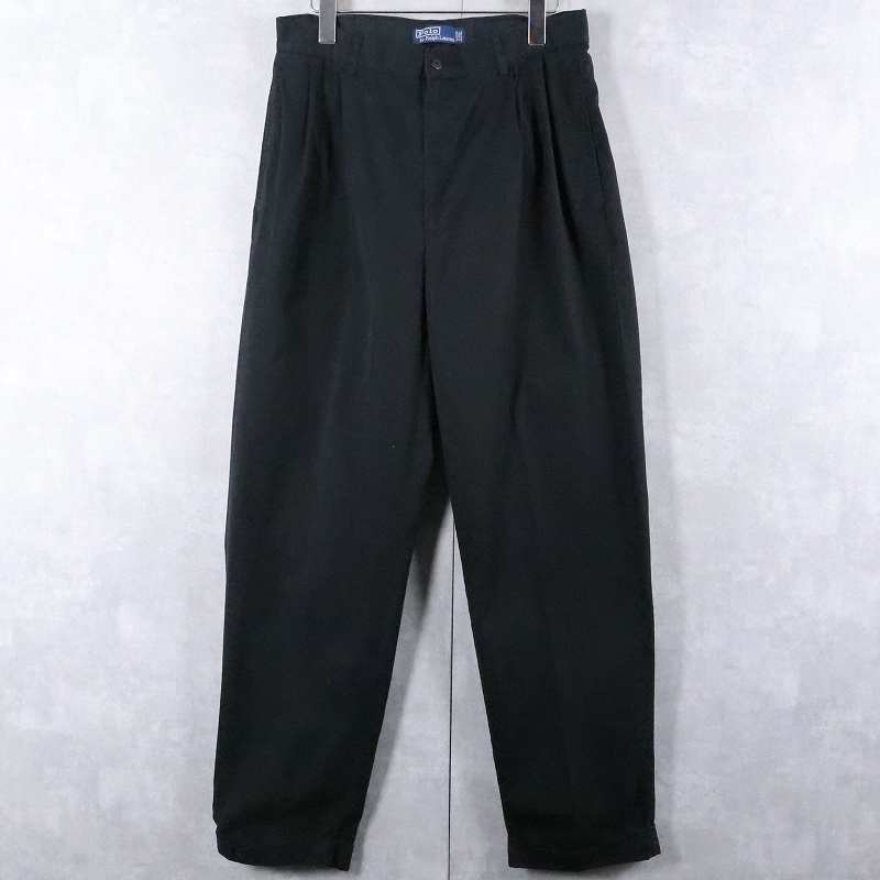 POLO Ralph Lauren 2タック コットンスラックス BLACK W32 [166016]