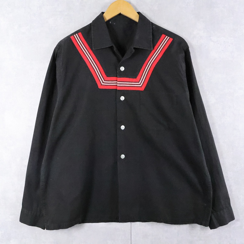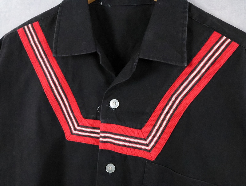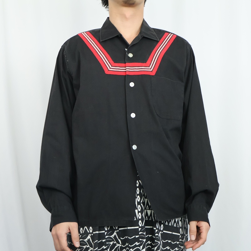 60's Unknown ラインデザイン コットンオープンカラーシャツ BLACK [166050]