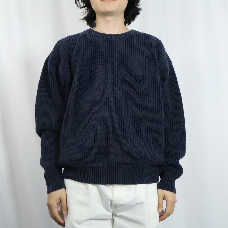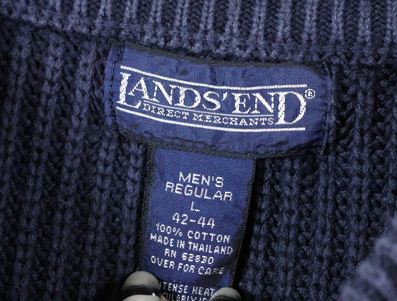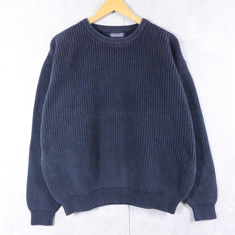 90's LANDS' END コットンニットセーター NAVY L [166055]
