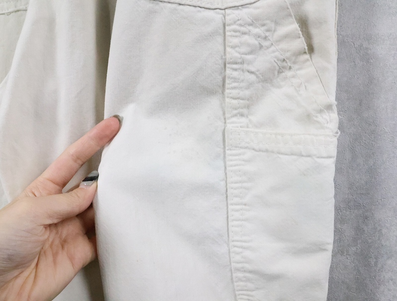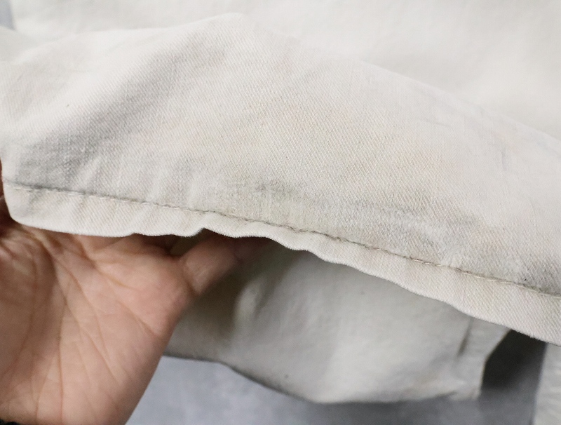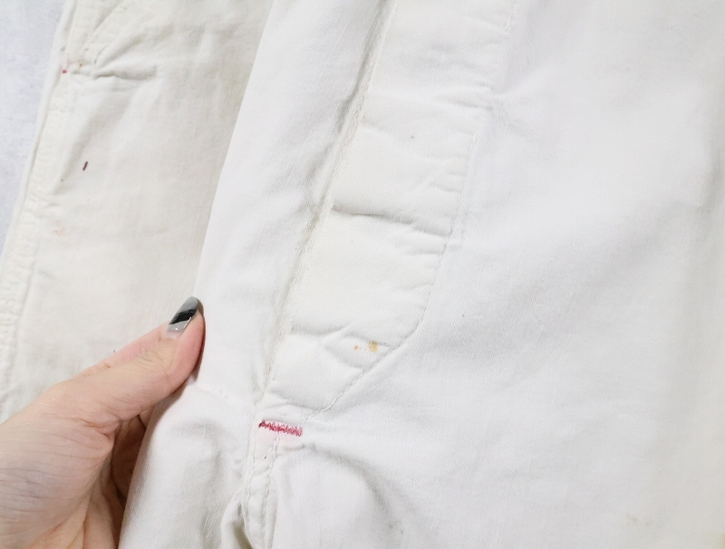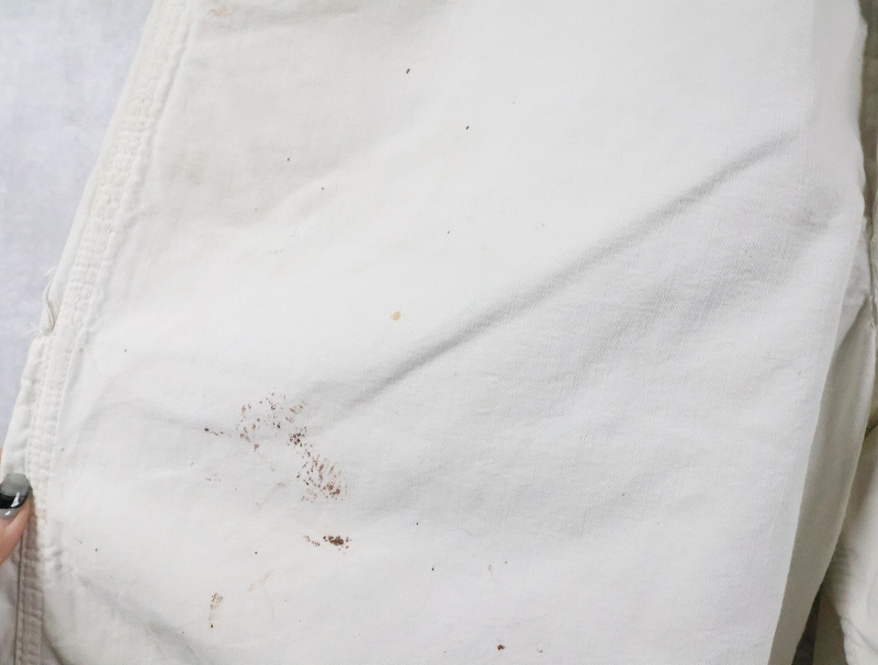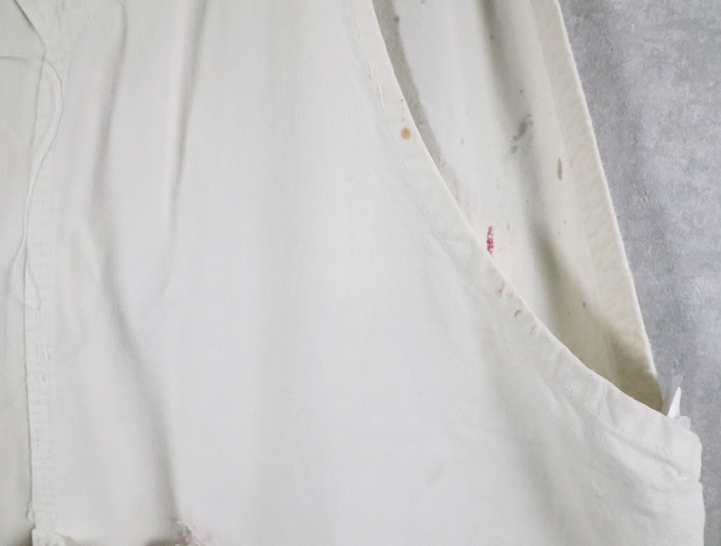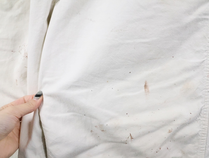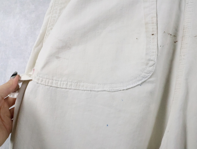 - ペンキ汚れ、シミ、破れや擦れなどのダメージがありますが、とても雰囲気の良い一点です。