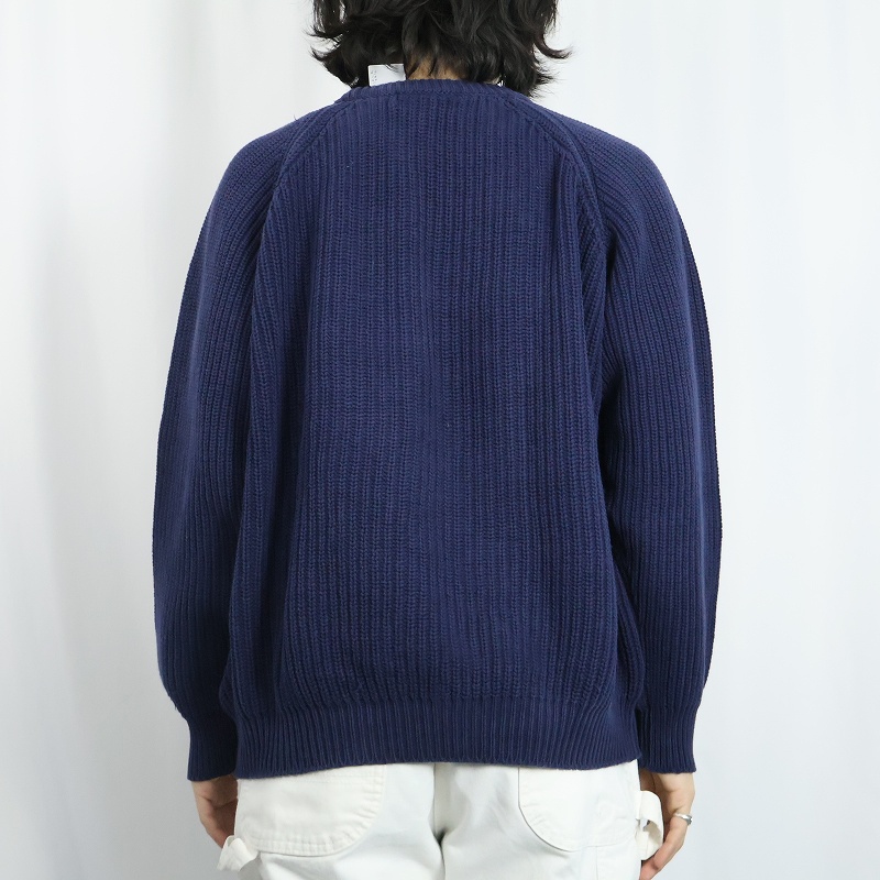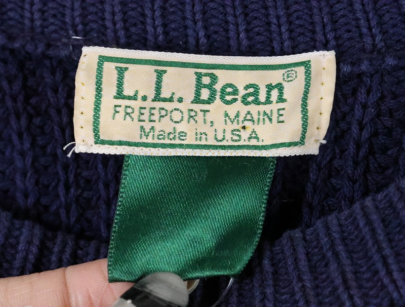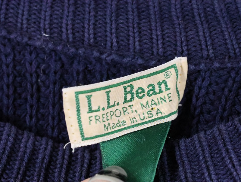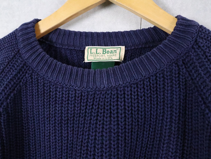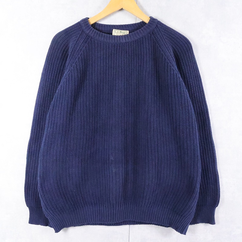80's L.L.Bean コットンラグランニットセーター NAVY [166063]
