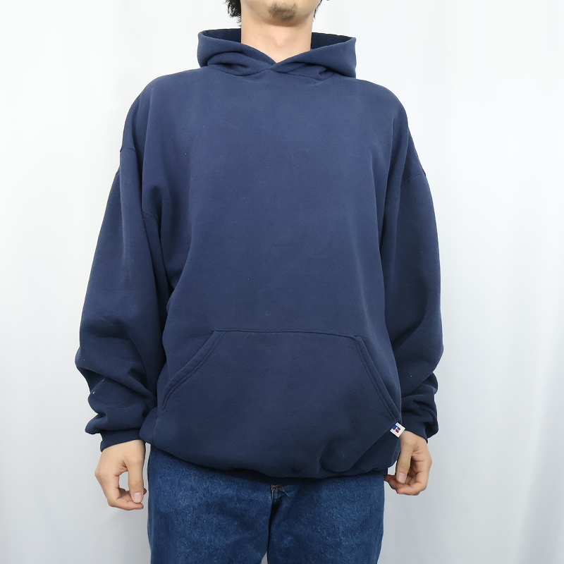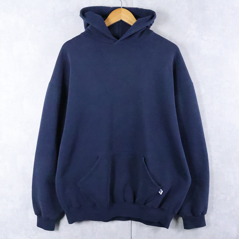 90's RUSSELL ATHLETIC USA製 無地スウェットフーディー NAVY XXL [166105]