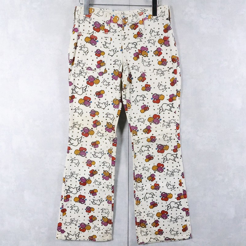 70's Wrangler × Peter Max USA製 総柄 コットンフレアパンツ W28 [166111]