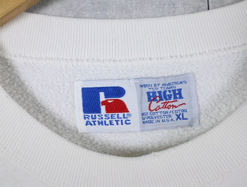 90's RUSSELL ATHLETIC USA製 "HIGH COTTON" 前V 無地スウェット XL [166194]