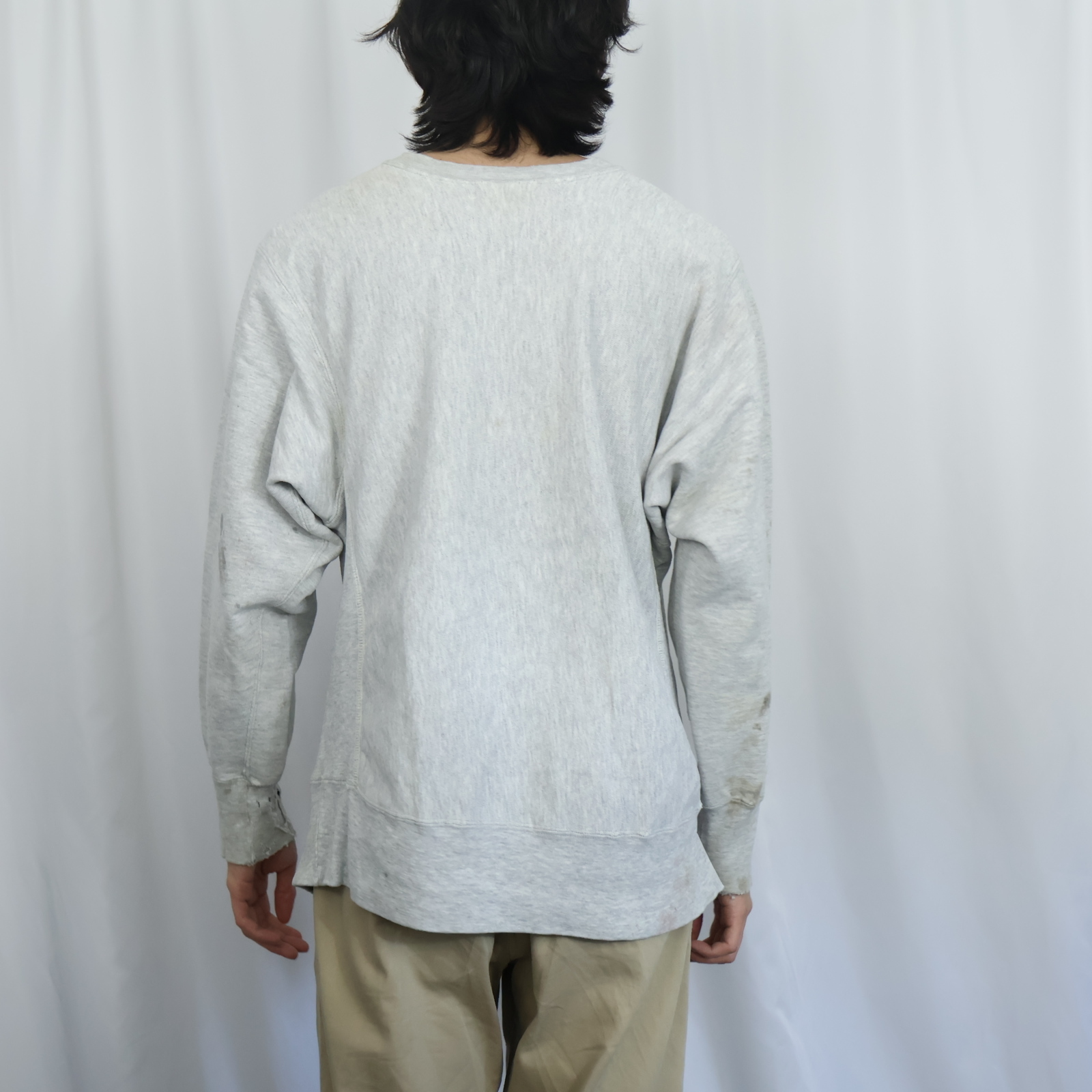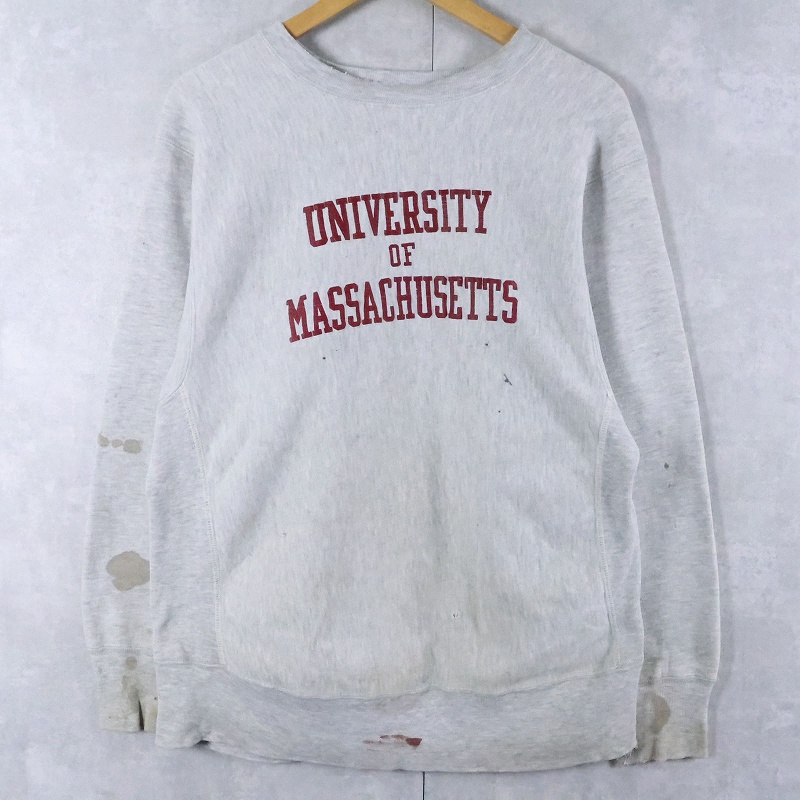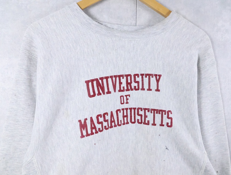 80's Champion REVERSE WEAVE USA製 トリコタグ "UNIVERSITY OF MASSACHUSETTS" プリントスウェット L [166200]