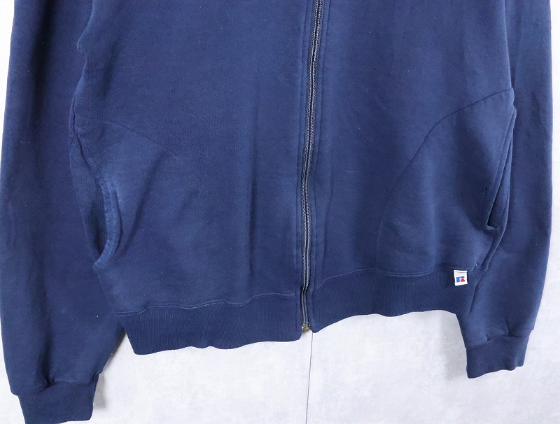 90's RUSSELL ATHLETIC USA製 ハイネック 無地スウェットジップジャケット NAVY M [166213]