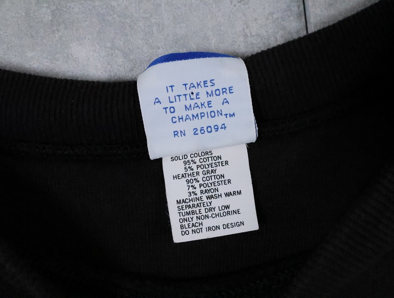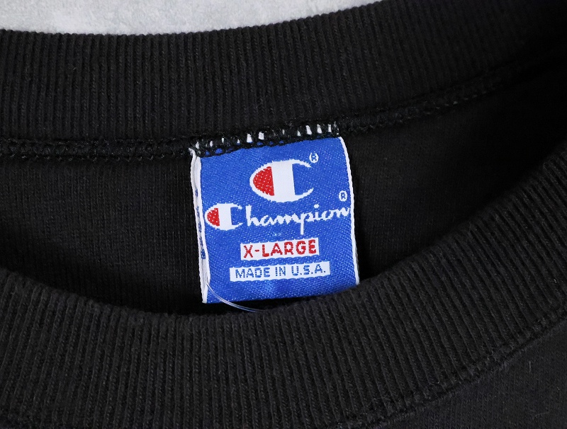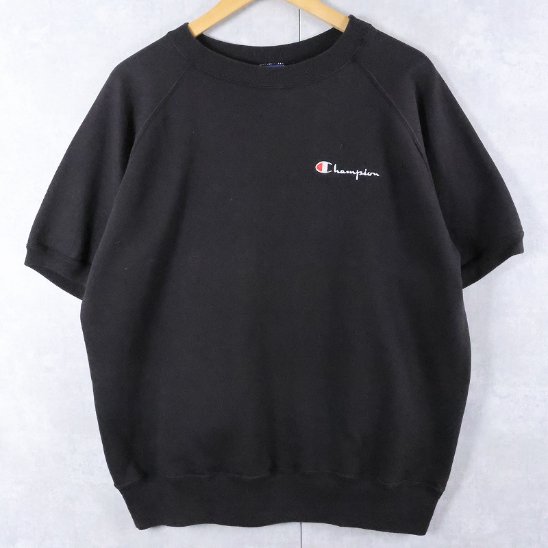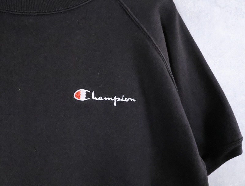 90's Champion 青刺繍タグ 中期 USA製 ロゴ刺繍 半袖スウェット BLACK XL [166221]