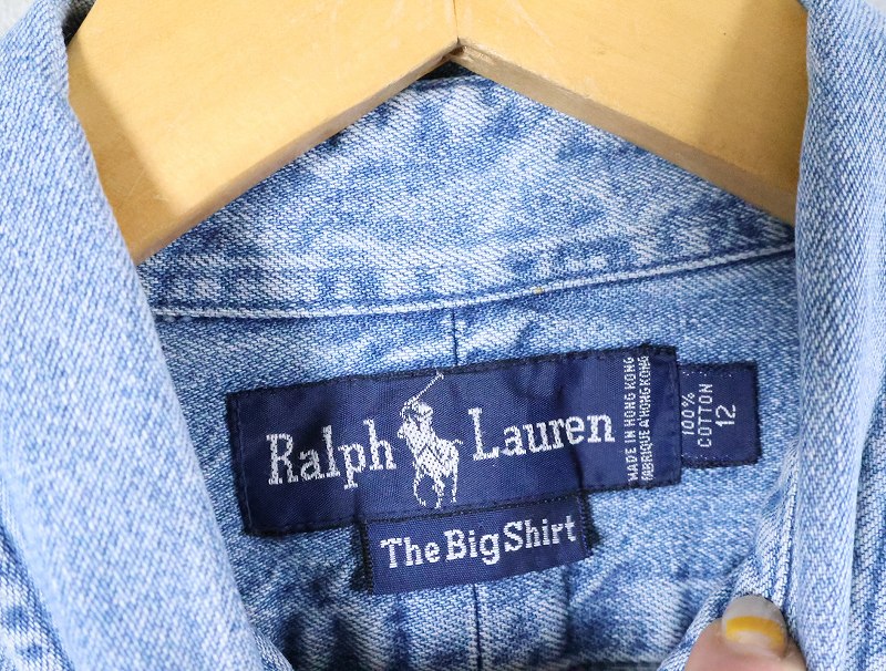 POLO Ralph Lauren ロゴ刺繍 "The Big Shirt" デニムボタンダウンシャツ size12 [166226]