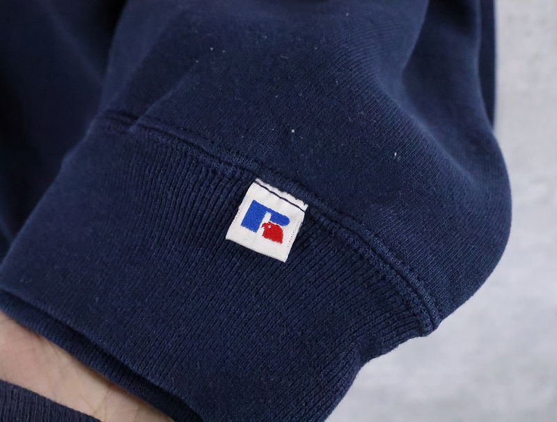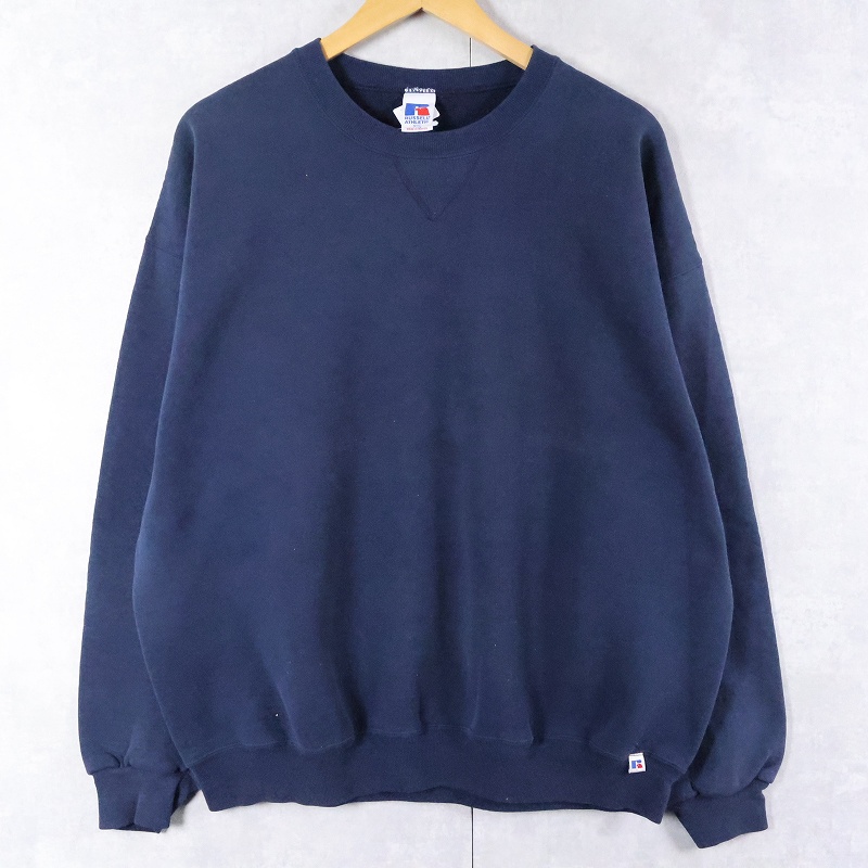 90's RUSSELL ATHLETIC 前V 無地スウェット NAVY XXL [166258]