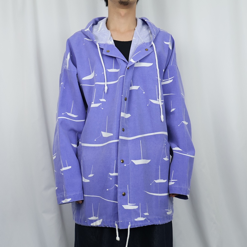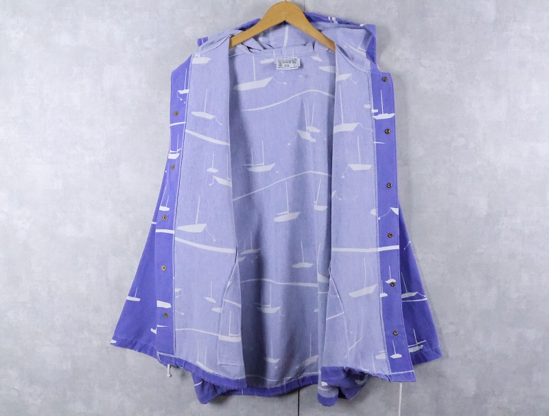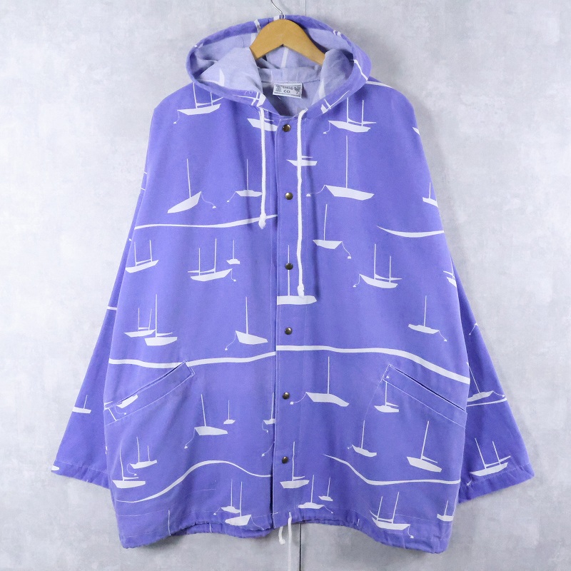 90's MICHIGAN RAG CO. USA製 ヨット柄 コットンポリ プリントパーカー XL [166262]