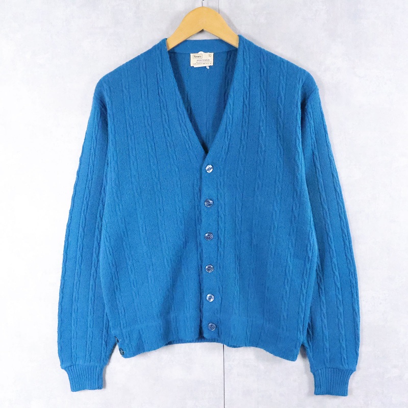 60〜70's SEARS SPORTSWEAR ケーブル編み アクリルニットカーディガン L [166296]