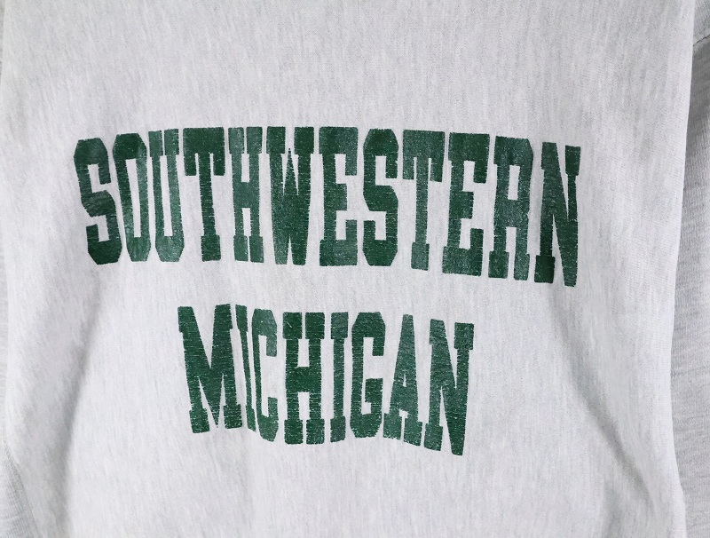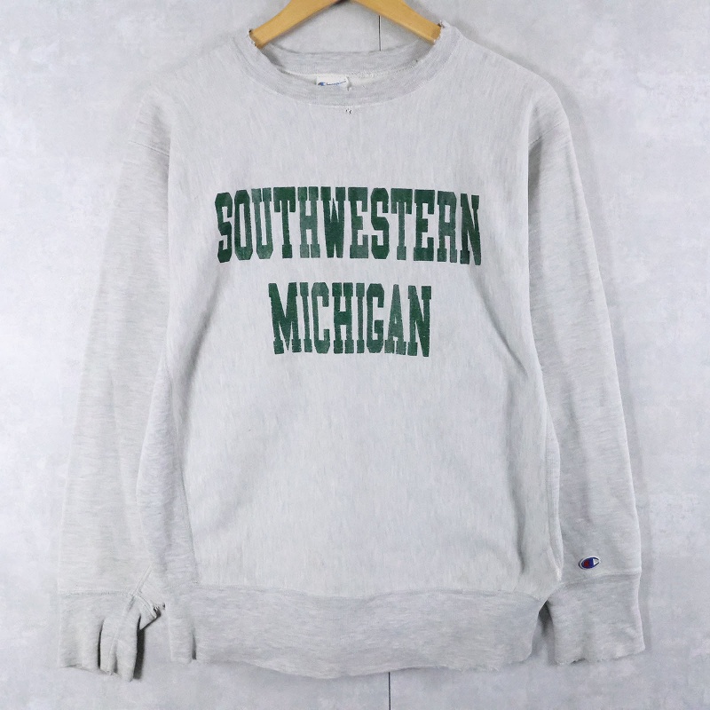 80's Champion REVERSE WEAVE USA製 トリコタグ "SOUTHWESTERN MICHIGAN" プリントスウェット L [166305]