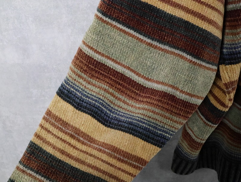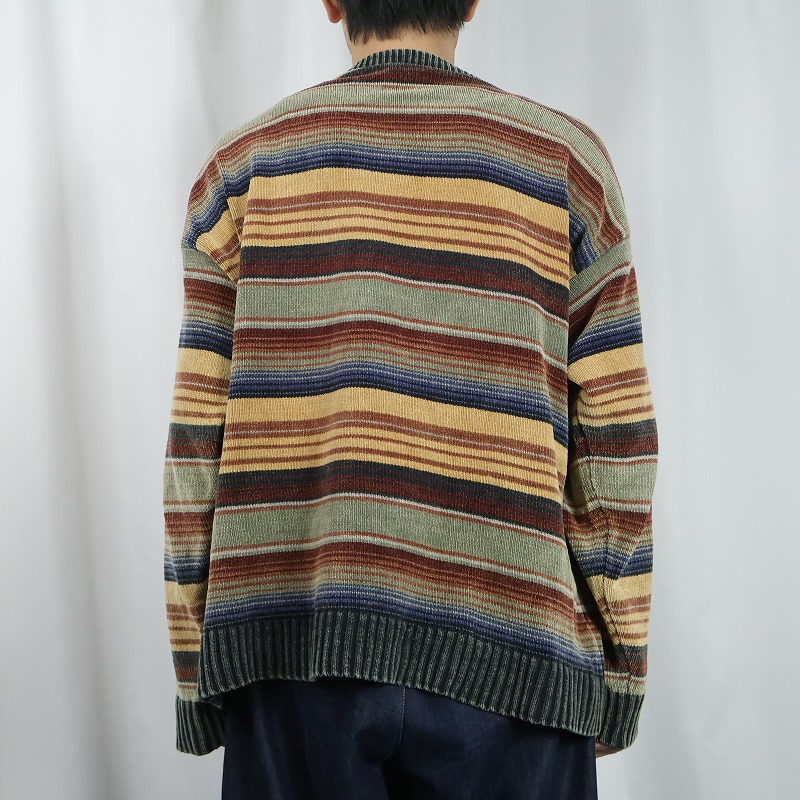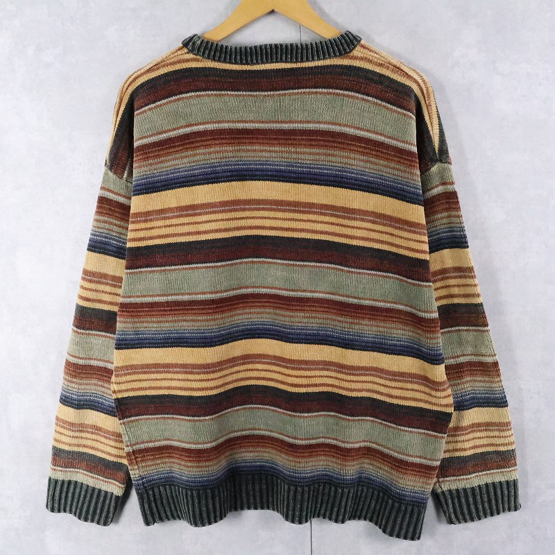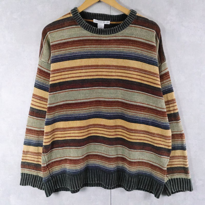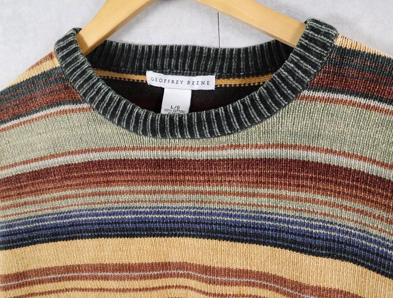 GEOFFREY BEENE マルチボーダー柄 コットンニットセーター L [166324]