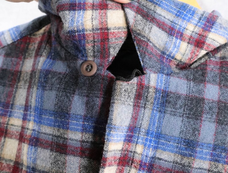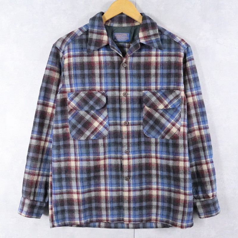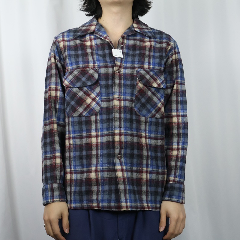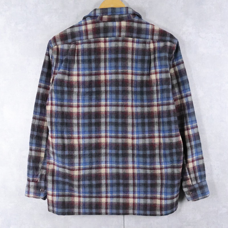 70's PENDLETON USA製 チェック柄 ウールオープンカラーシャツ M [166362]