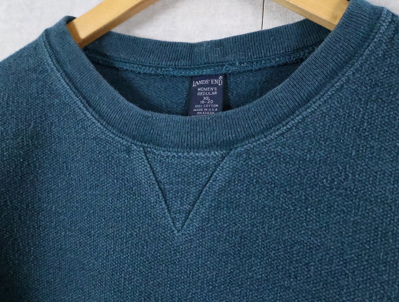 90's LANDS'END USA製 前V 鹿の子スウェット XL [166366]