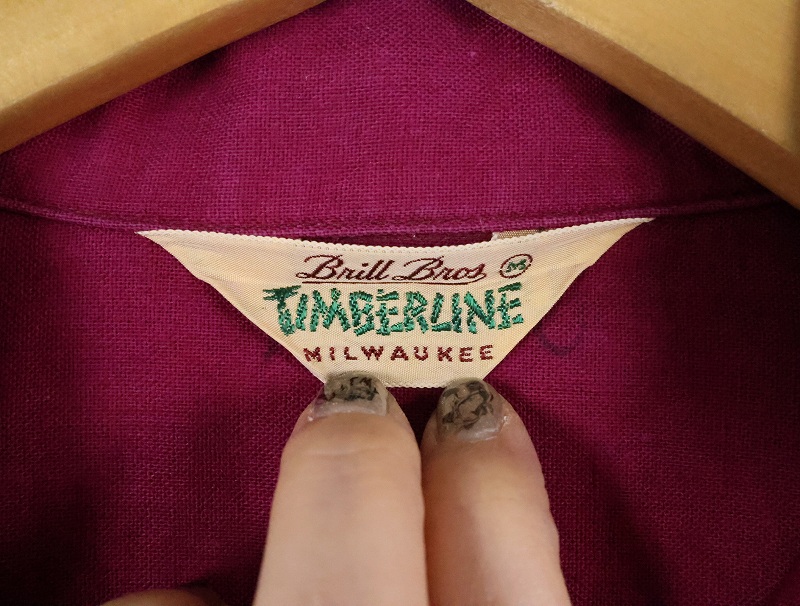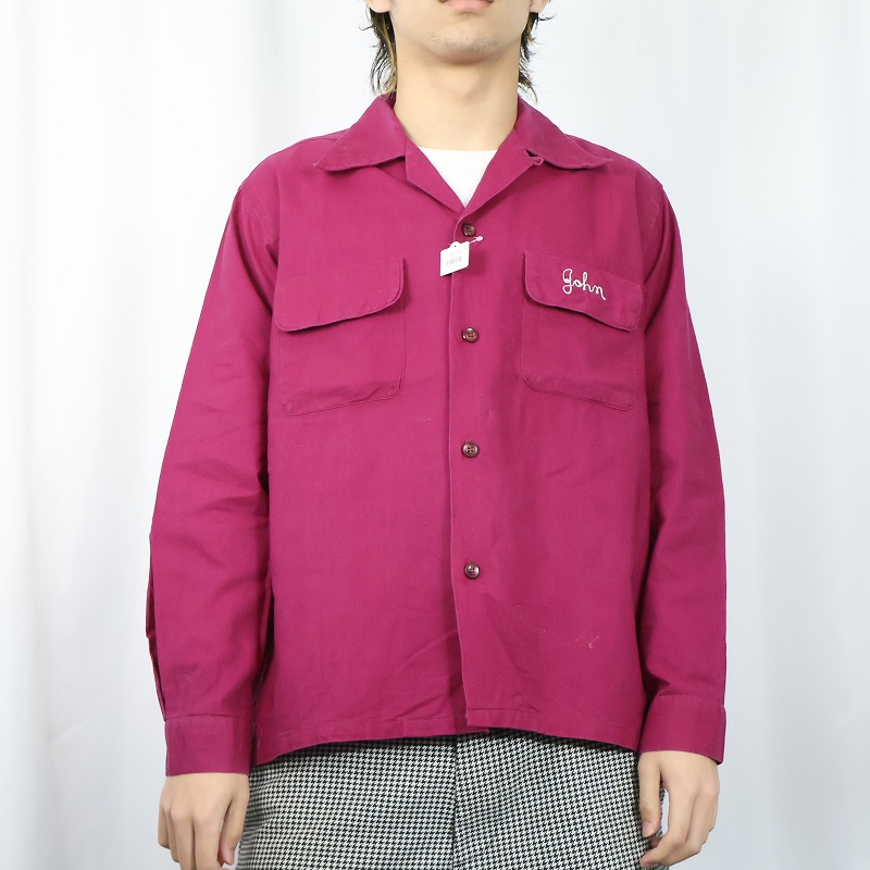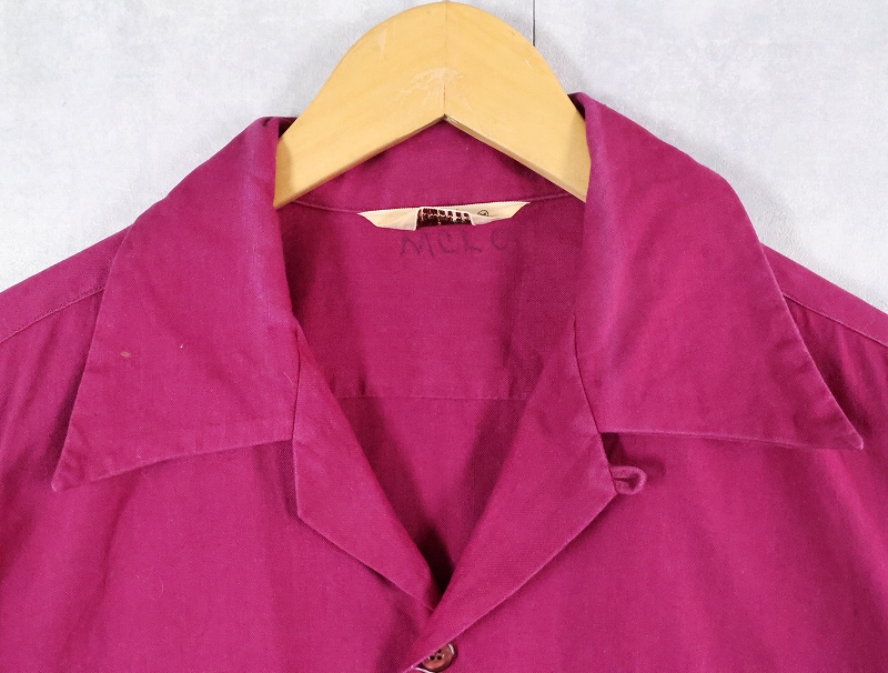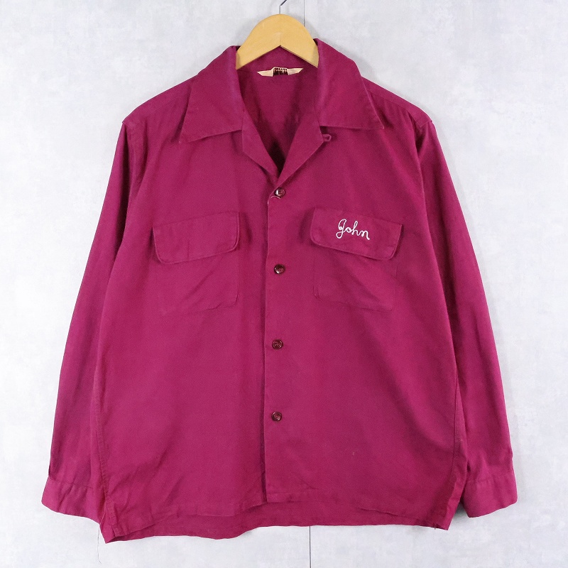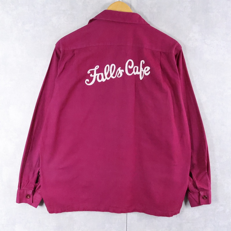 50's TIMBERLINE "Falls Cafe" チェーン刺繍 コットンオープンカラーシャツ M [166391]