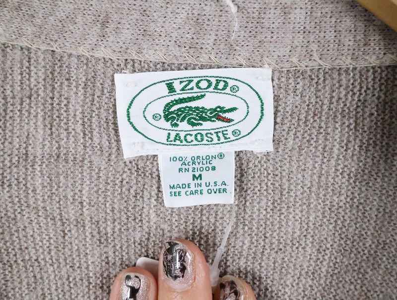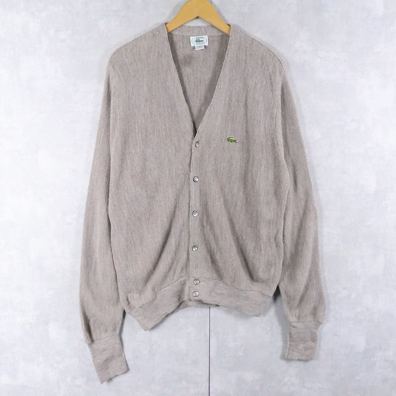 80〜90's IZOD LACOSTE USA製 ロゴ刺繍 アクリルニットカーディガン M [166397]