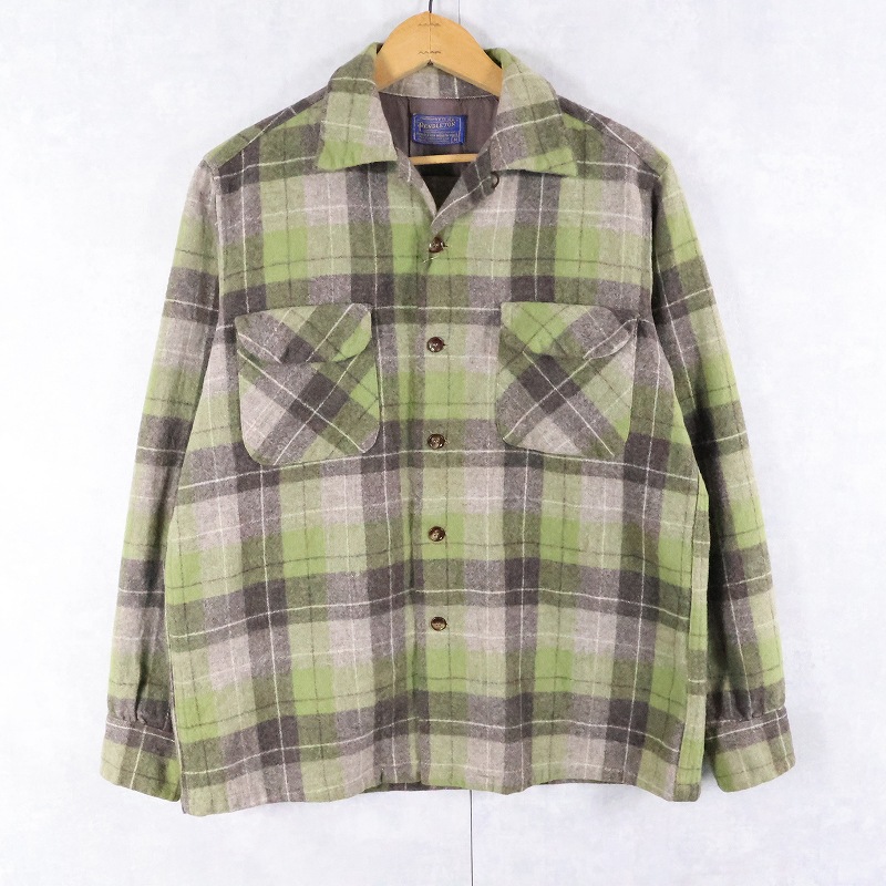 50's PENDLETON チェック柄 ウールオープンカラーシャツ M [166421]