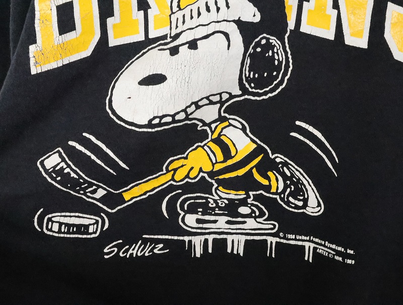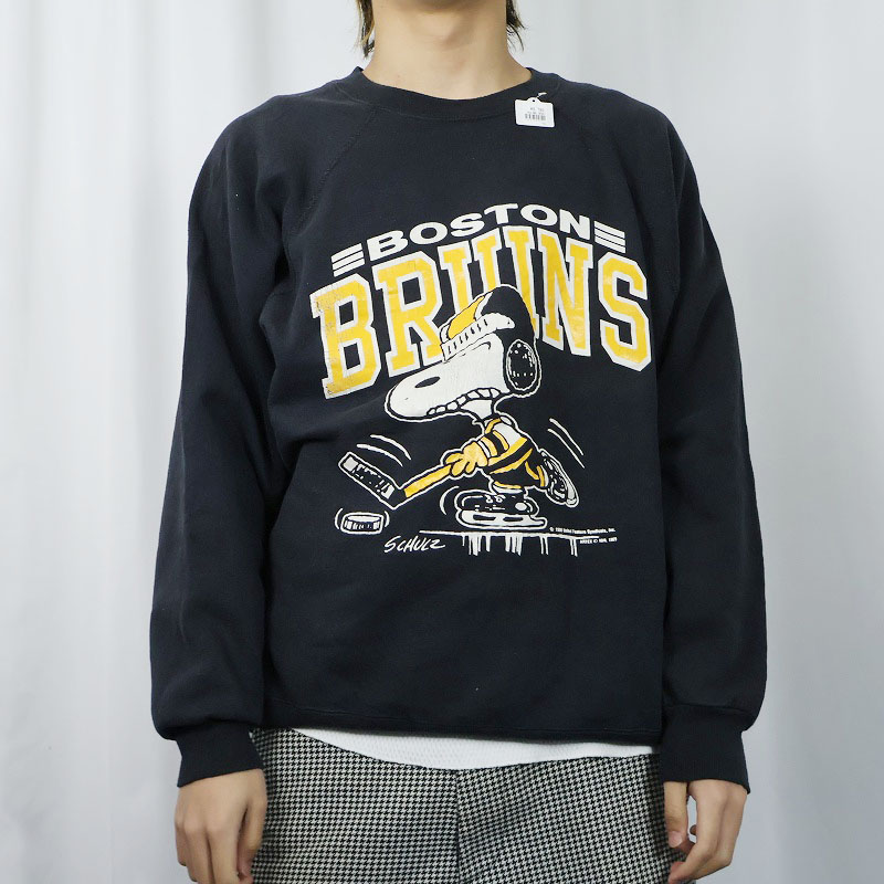 80's〜 SNOOPY "BOSTON BRUINS" キャラクタープリントスウェット BLACK [166439]