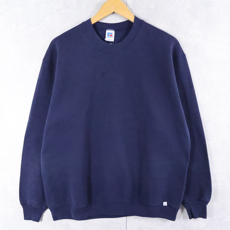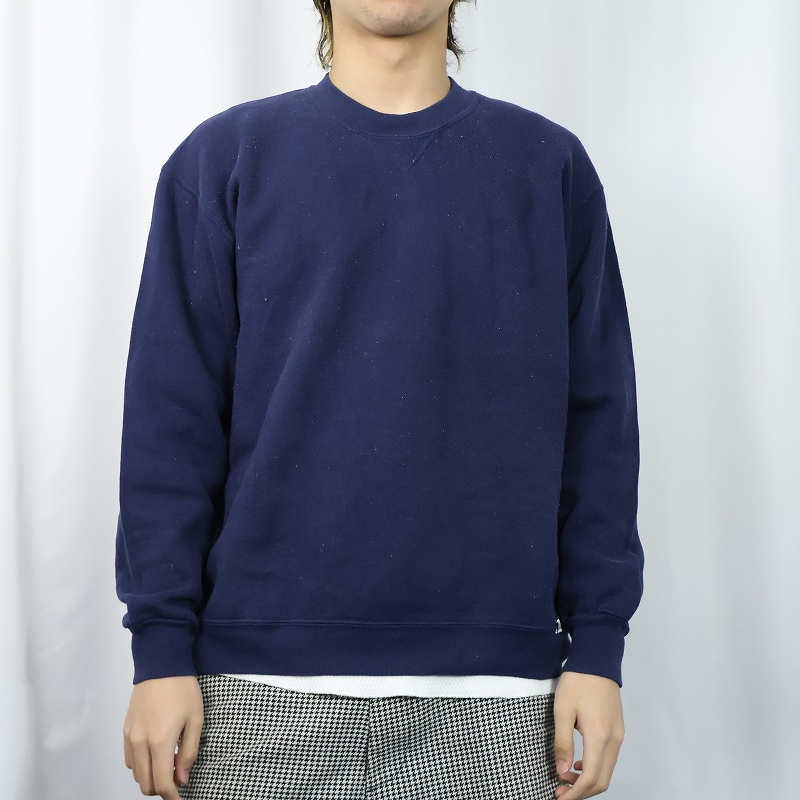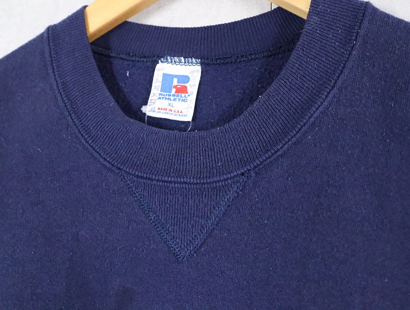 80's RUSSELL ATHLETIC USA製 前V 無地スウェット NAVY XL [166447]
