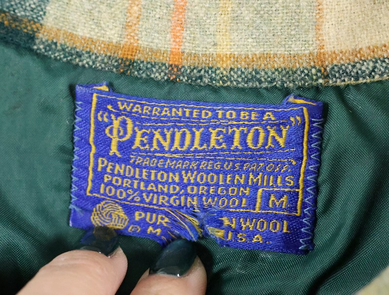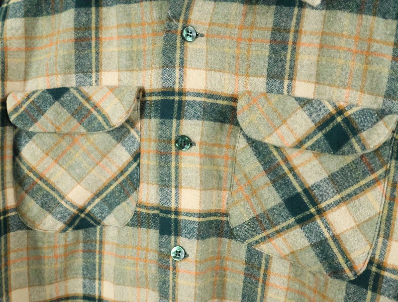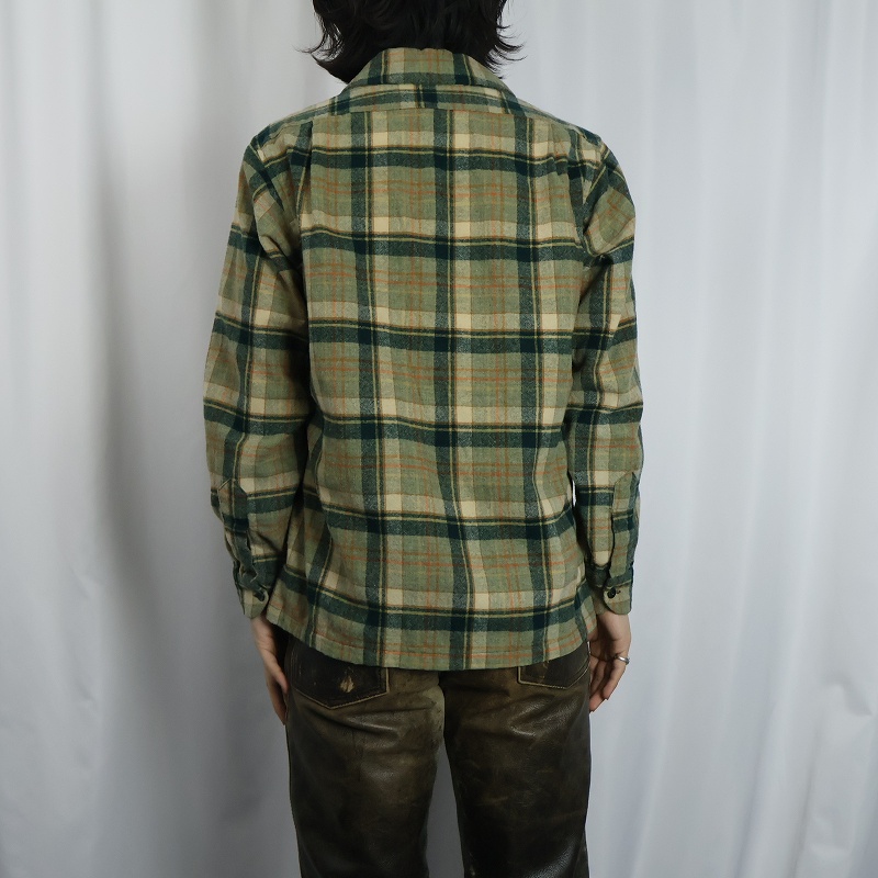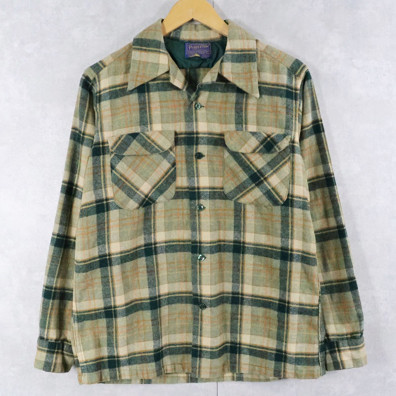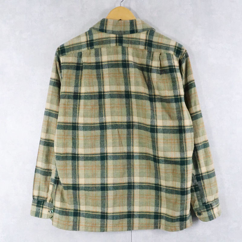 70's PENDLETON USA製 チェック柄 ウールオープンカラーシャツ M [166458]