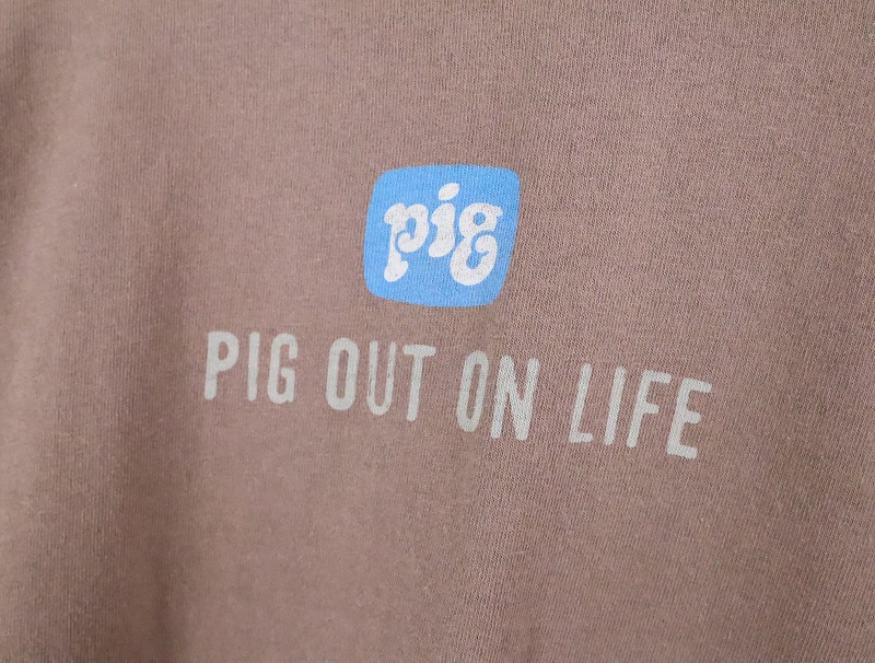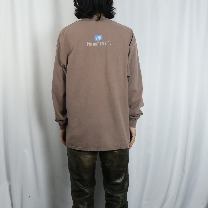"PIG OUT ON LIFE" ブタ イラストプリントロンT XL [166464]
