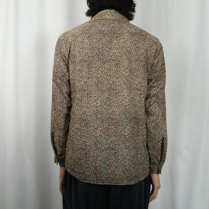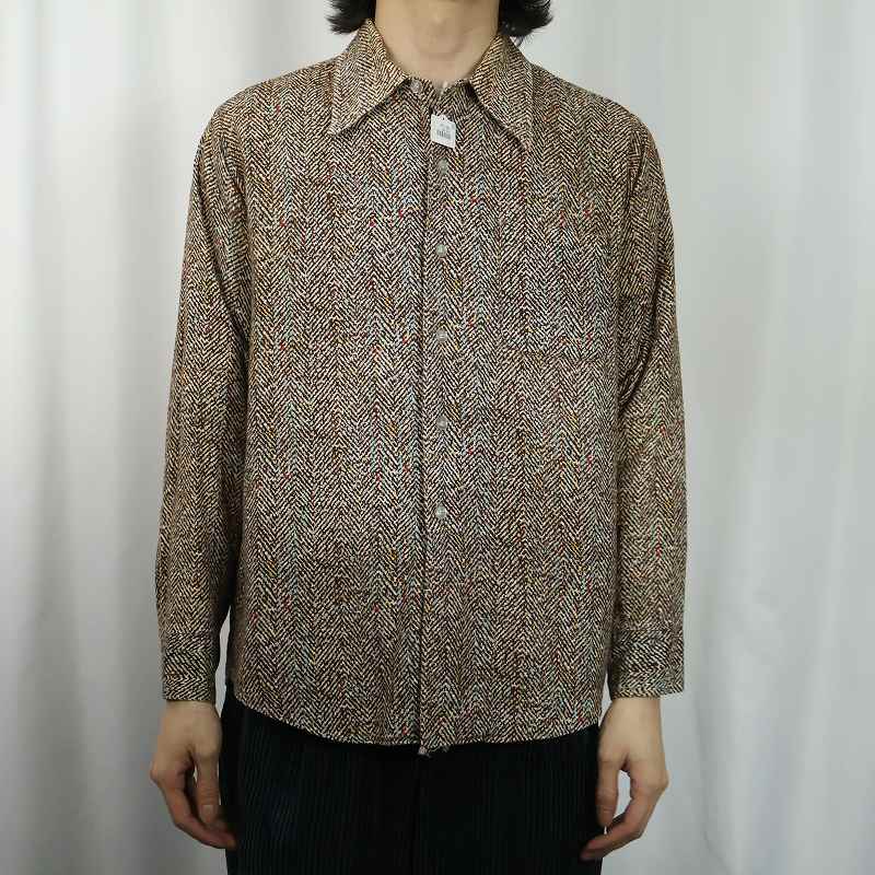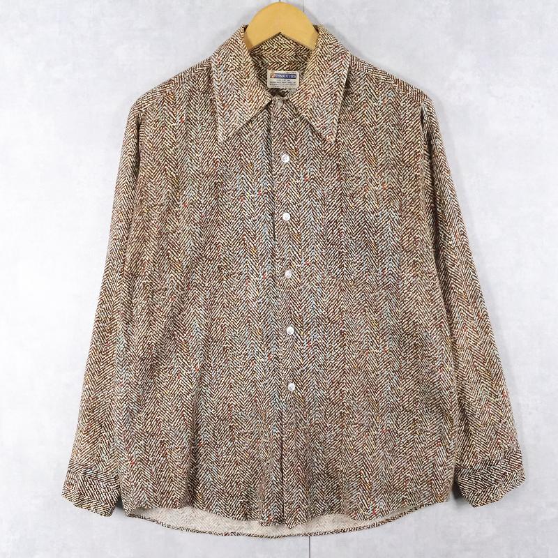 70's PERMANENT PRESS USA製 総柄 プリントネルシャツ M [166474]
